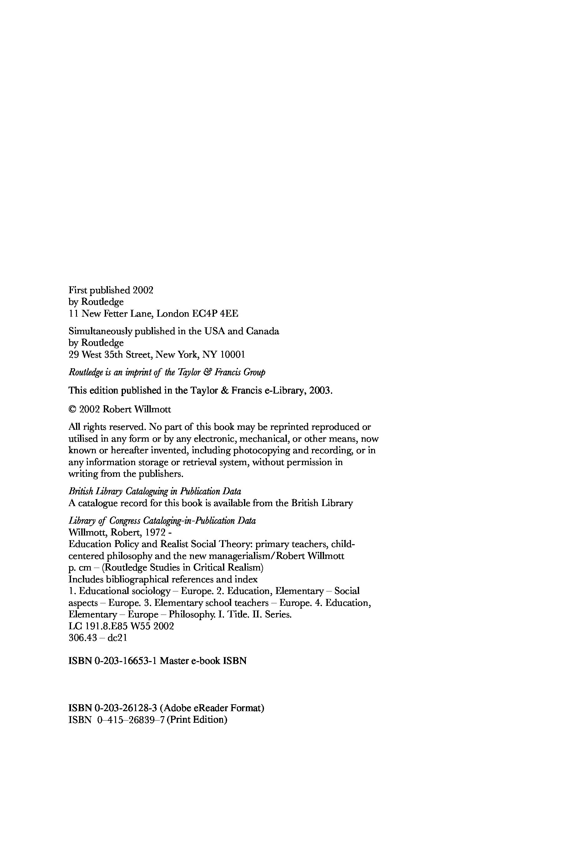 "Education Policy and Realist Social Theory: Primary Teachers, Child-Centred Philosophy and the New Managerialism (Routledge Studies in Critical Realism)" - читать интересную книгу автора (Robert Wilmott)