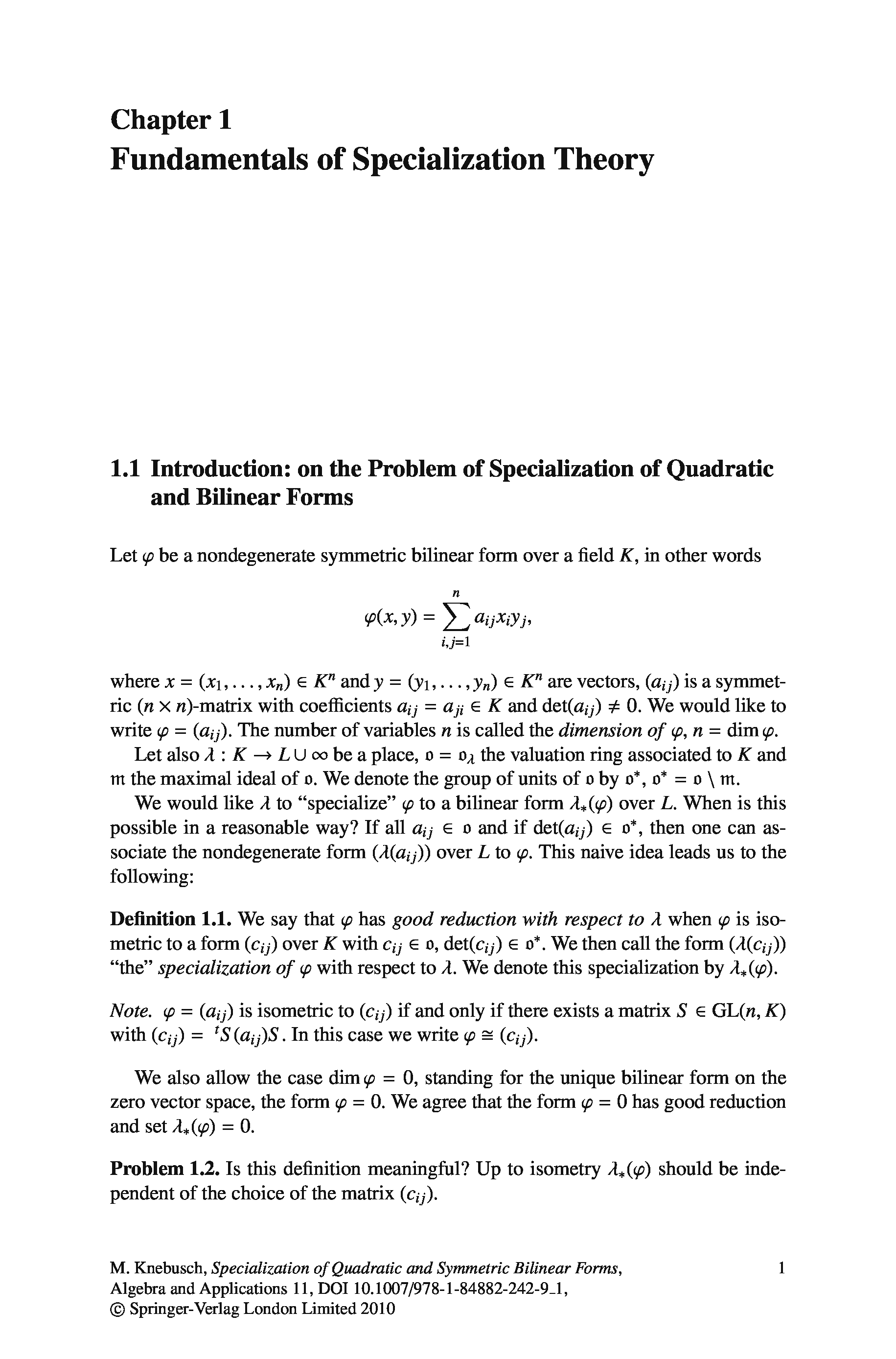 "Specialization of Quadratic and Symmetric Bilinear Forms (Algebra and Applications 11)" - читать интересную книгу автора (Manfred Knebusch (Trans. Thomas Unger)) |