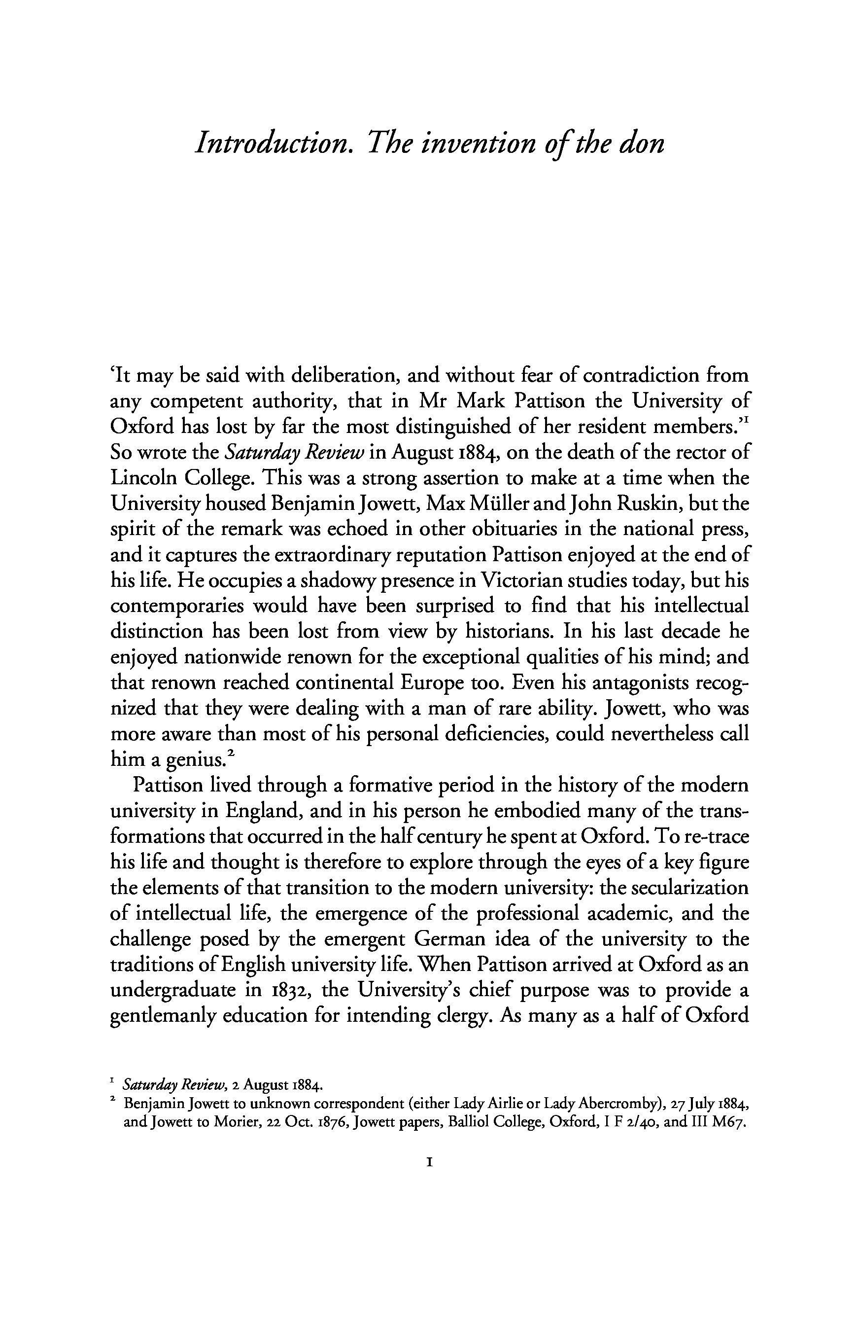 "Intellect and Character in Victorian England: Mark Pattison and the Invention of the Don" - читать интересную книгу автора (H. S. Jones)