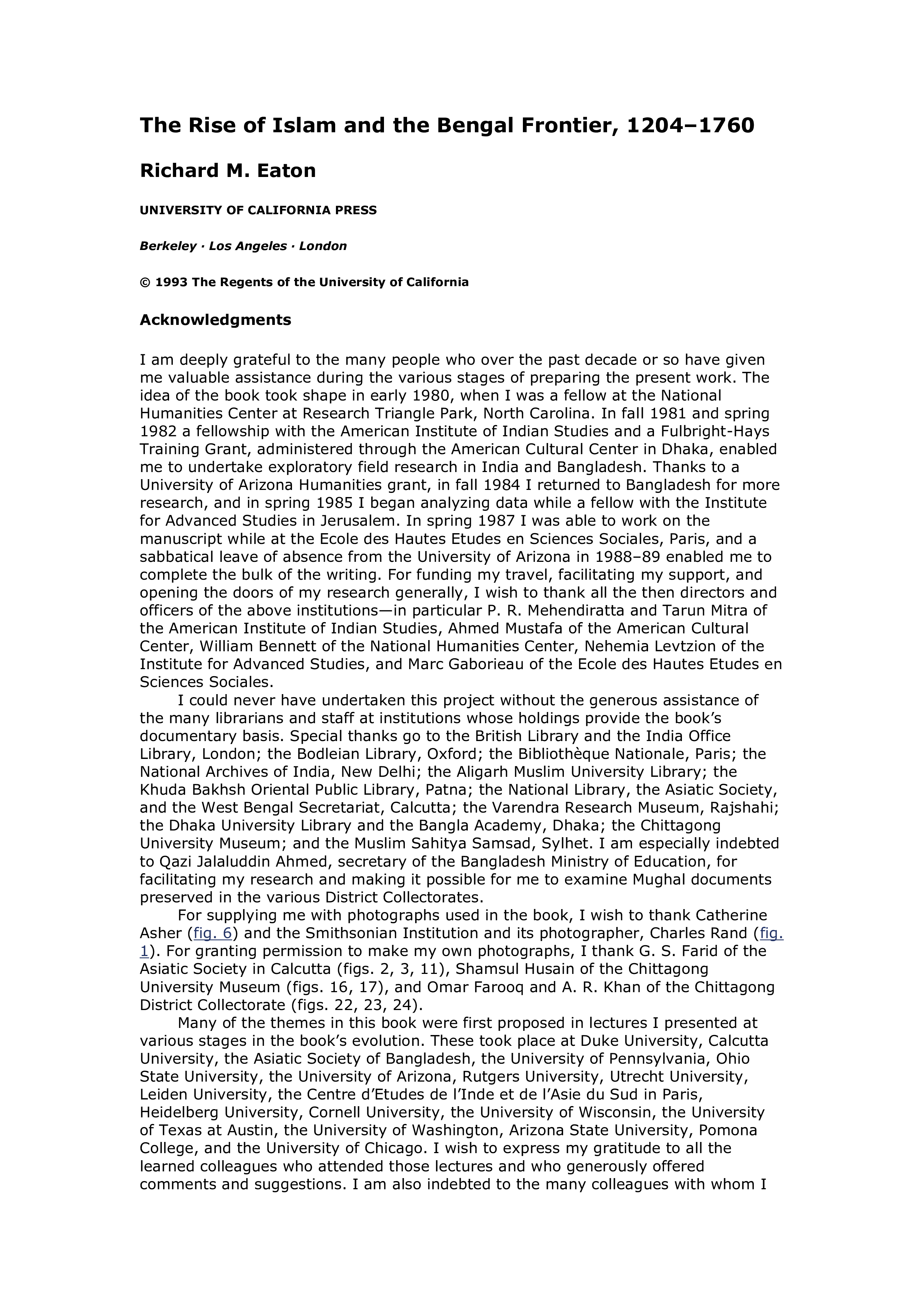 "The Rise of Islam and the Bengal Frontier, 1204-1760 (Comparative Studies on Muslim Societies)" - читать интересную книгу автора (Richard M. Eaton) |