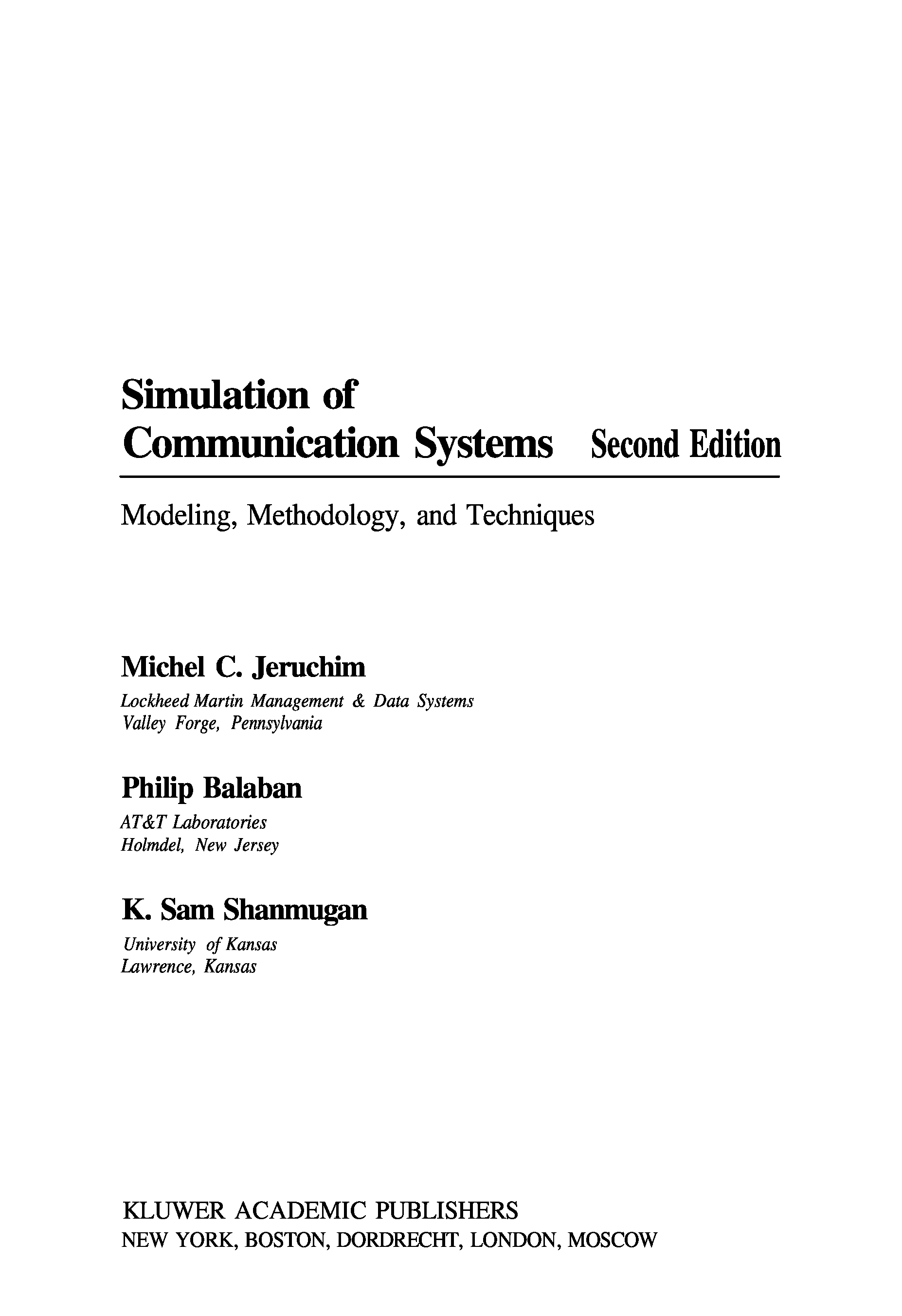 "Simulation of Communication Systems : Modeling, Methodology and Techniques, Second Edition (Information Technology: Transmission, Processing and Storage)" - читать интересную книгу автора (Michel C. Jeruchim) |