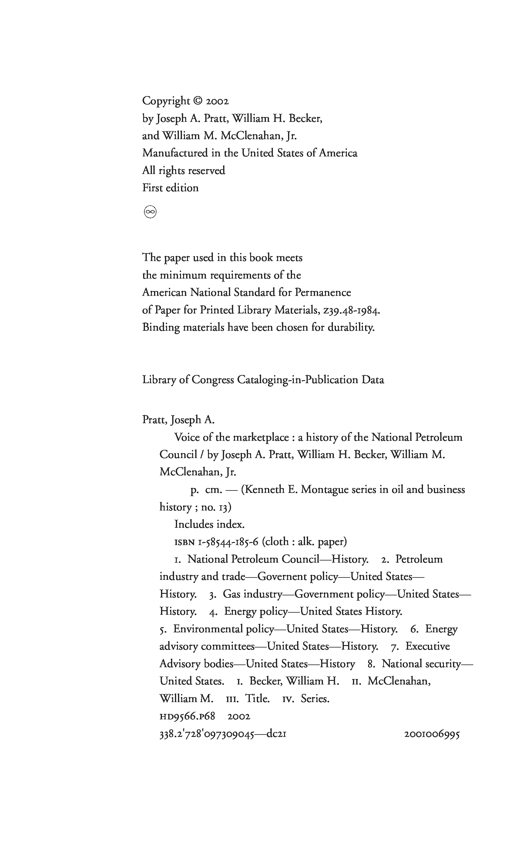 "Voice of the Marketplace: A History of the National Petroleum Council (Oil and Business History Series, 13)" - читать интересную книгу автора (Joseph A. Pratt, William H. Becker, William M. McClenahan Jr.) |