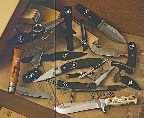 1 Туристический нож ф-мы GERBER (USA) 2 Военный нож для ношения в обуви ф-мы CAMILLUS (USA) 3 Офисный нож (China) 4 Боевой нож ф-мы BOKER (Germany) 5 Нож садовника ф-мы 0PINEL (France) 6 Нож-скинер ф-мы Frost (Japan) 7 Метательный нож ф-мы UNITED (USA) 8 Универсальный нож «Military» ф-мы SPYDERCO (USA) 9 Ручка-нож сувенирный ф-мы UNITED (USA) 10 Охотничий нож-скинер ф-мы BROUNING (USA) 11 Многофункциональный нож ф-мы WENGER (Swiss) 12 Мини-нож ф-мы UNITED (USA) 13 Охотничий нож ф-мы PUMA (Germany) |