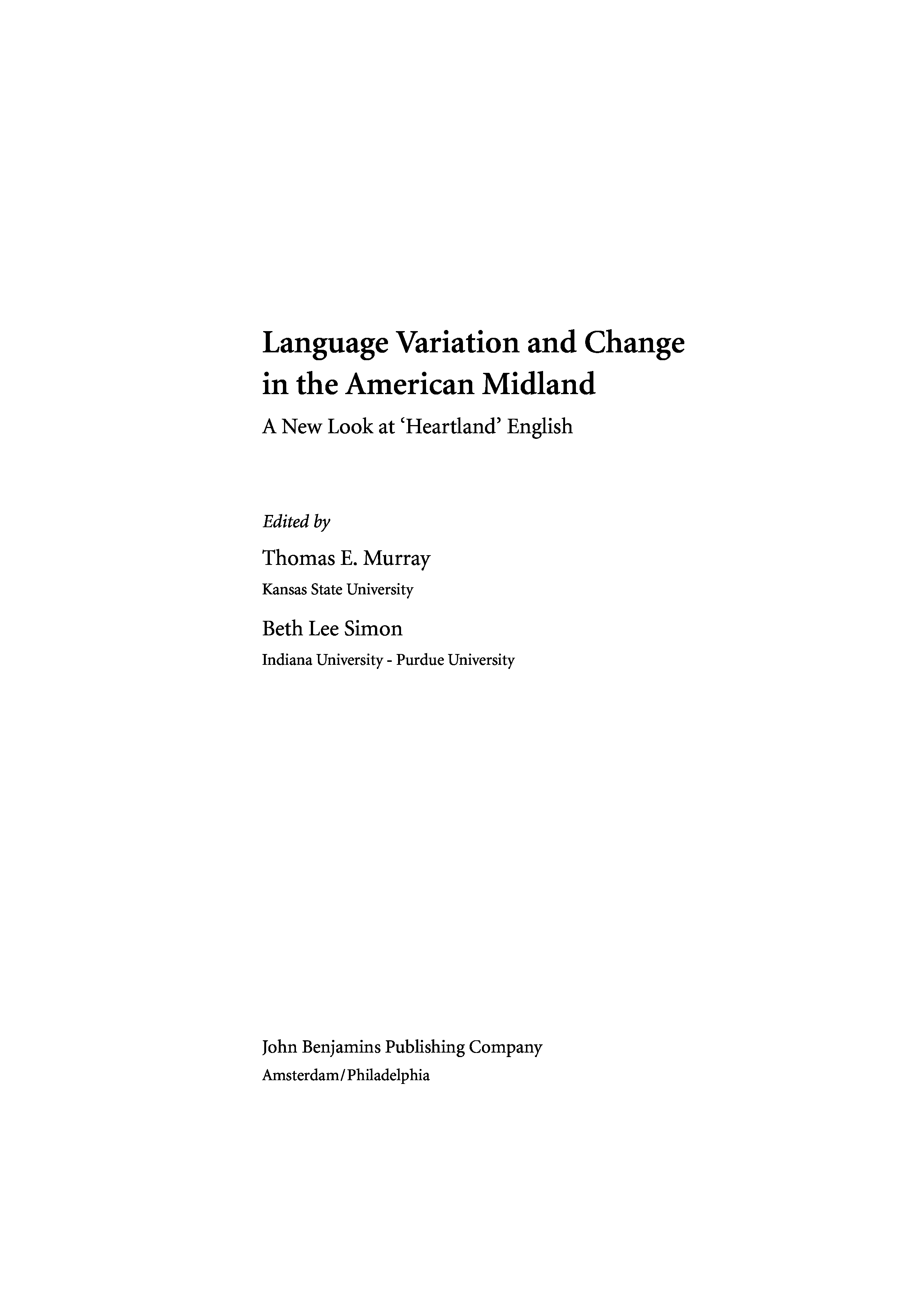 "Language Variation And Change in the American Midland: A New Look At 'Heartland' English (Varieties of English Around the World General Series)" - читать интересную книгу автора (Thomas E. Murray, Beth Lee Simon) |