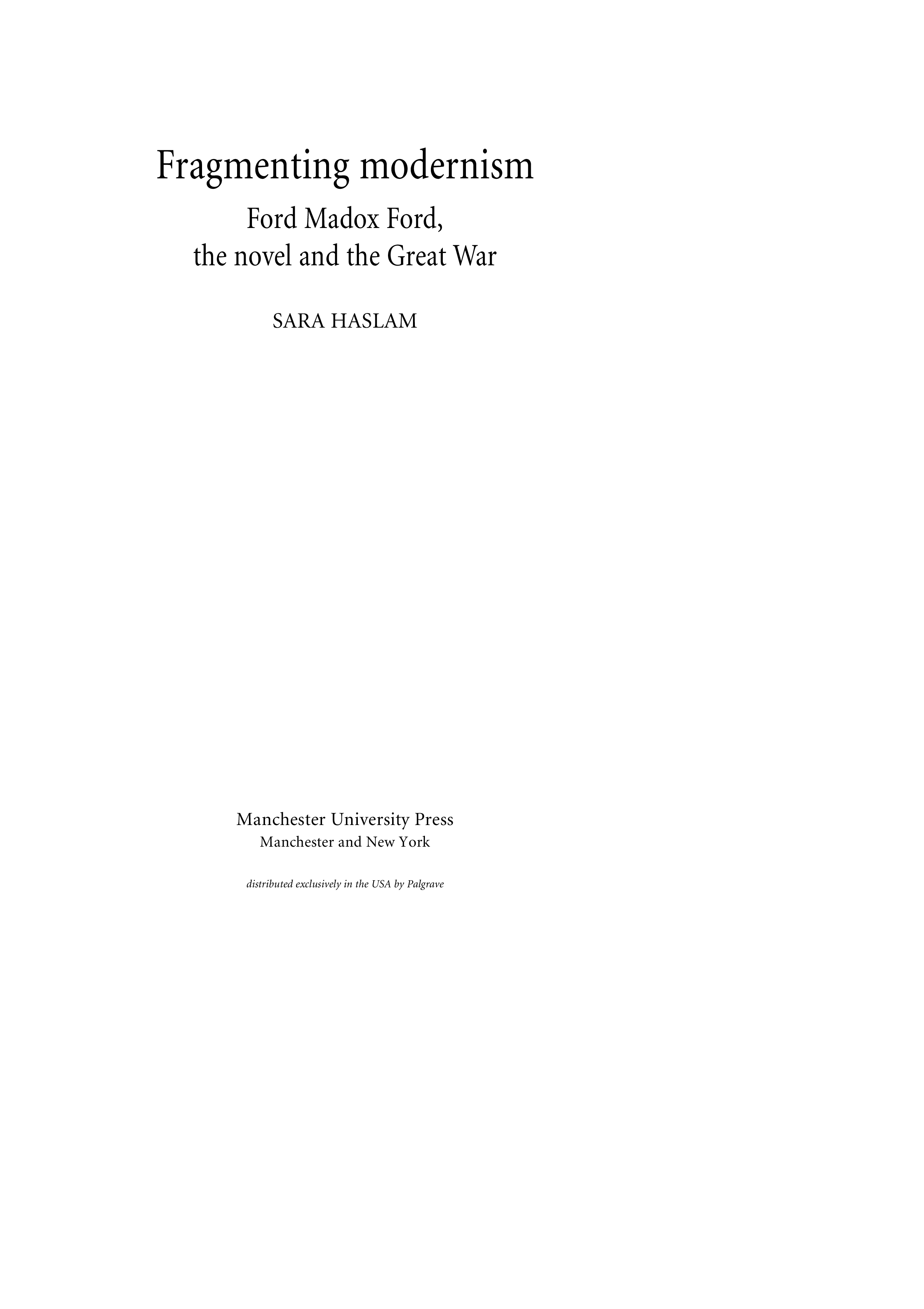 "Fragmenting Modernism: Ford Madox Ford, the Novel and the Great War" - читать интересную книгу автора (Sara Haslam)