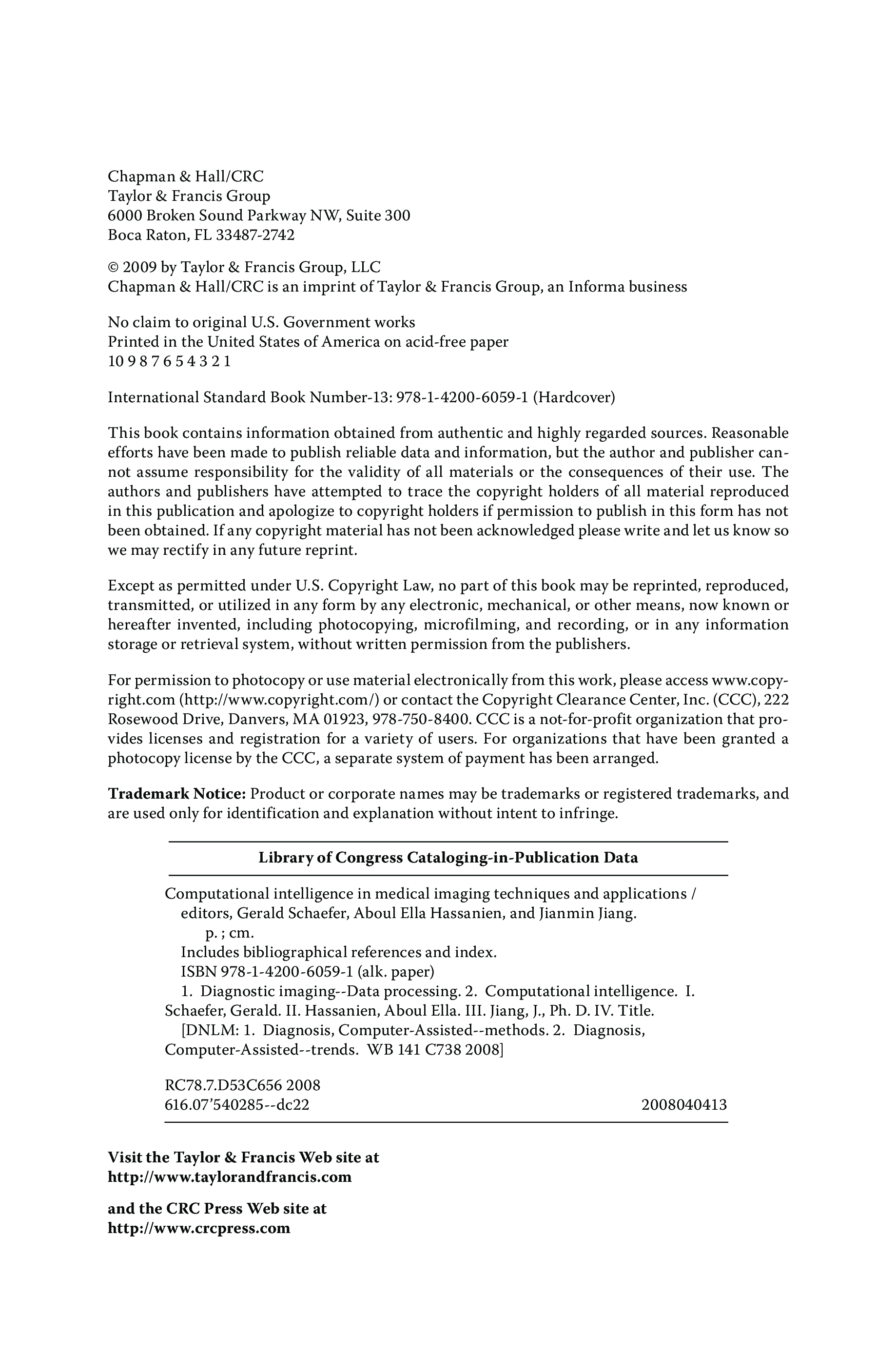 "Computational Intelligence in Medical Imaging: Techniques and Applications" - читать интересную книгу автора (G. Schaefer, A. Hassanien, J. Jiang) |