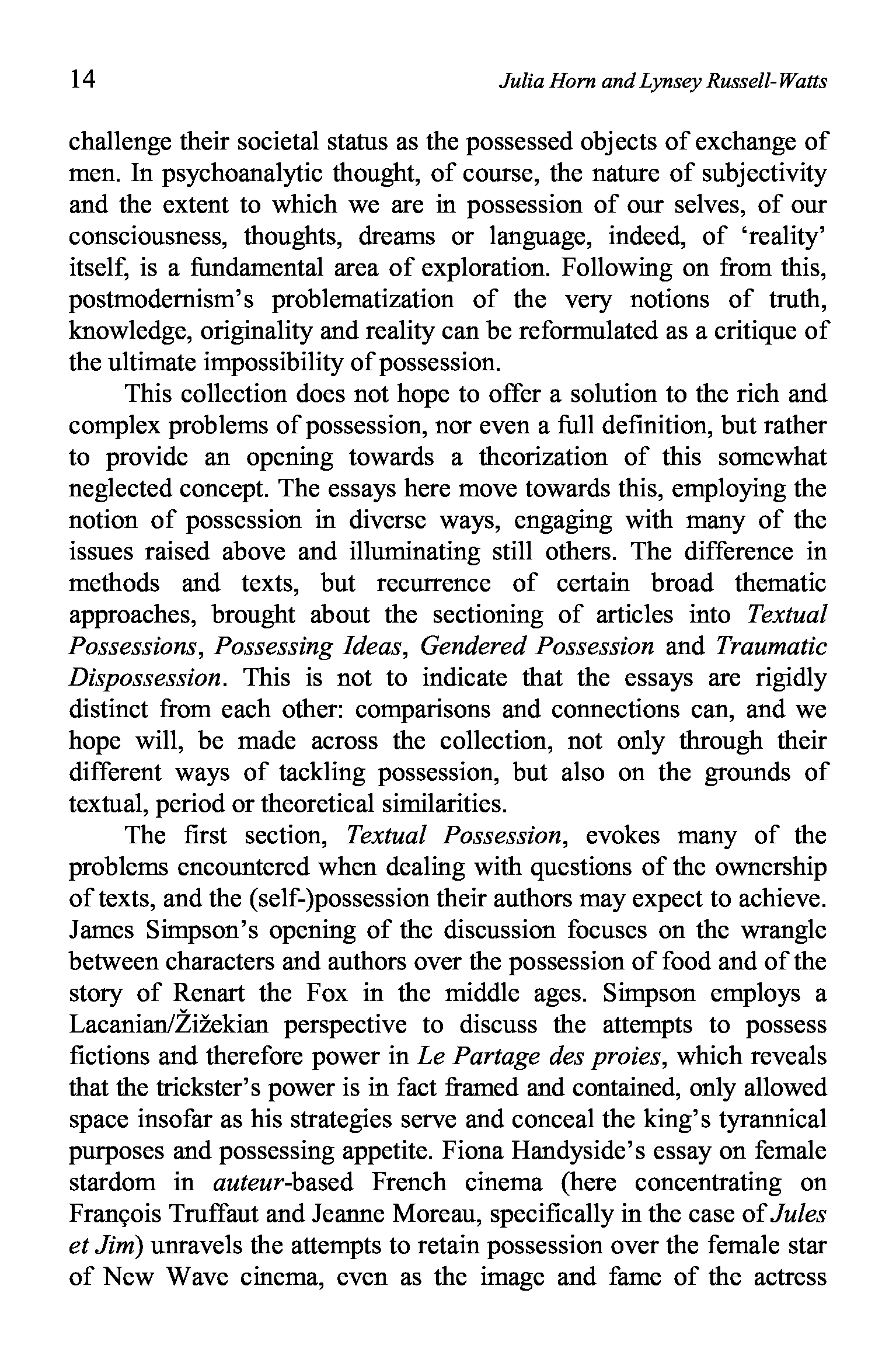 "Possessions: Essays in French Literature, Cinema, and Theory (Modern French Identities, V. 24)" - читать интересную книгу автора (Julia Horn, Lynsey Russell-Watts)