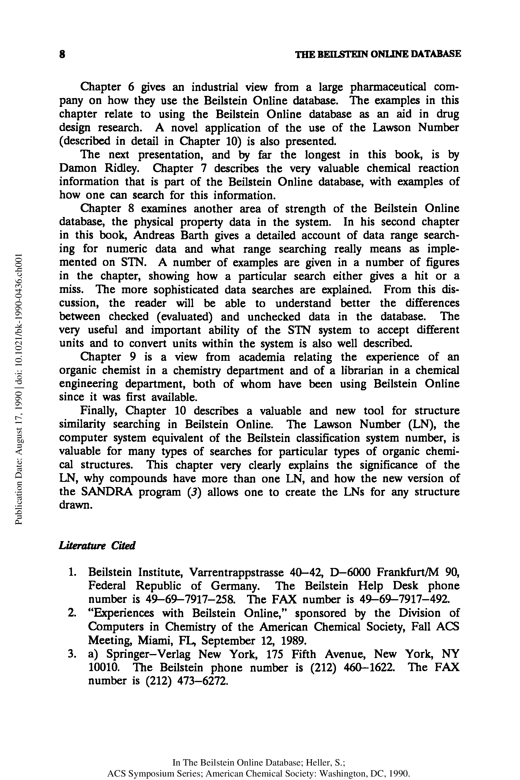 "The Beilstein Online Database: Implementation, Content, and Retrieval (Acs Symposium Series)" - читать интересную книгу автора (Stephen R. Heller)