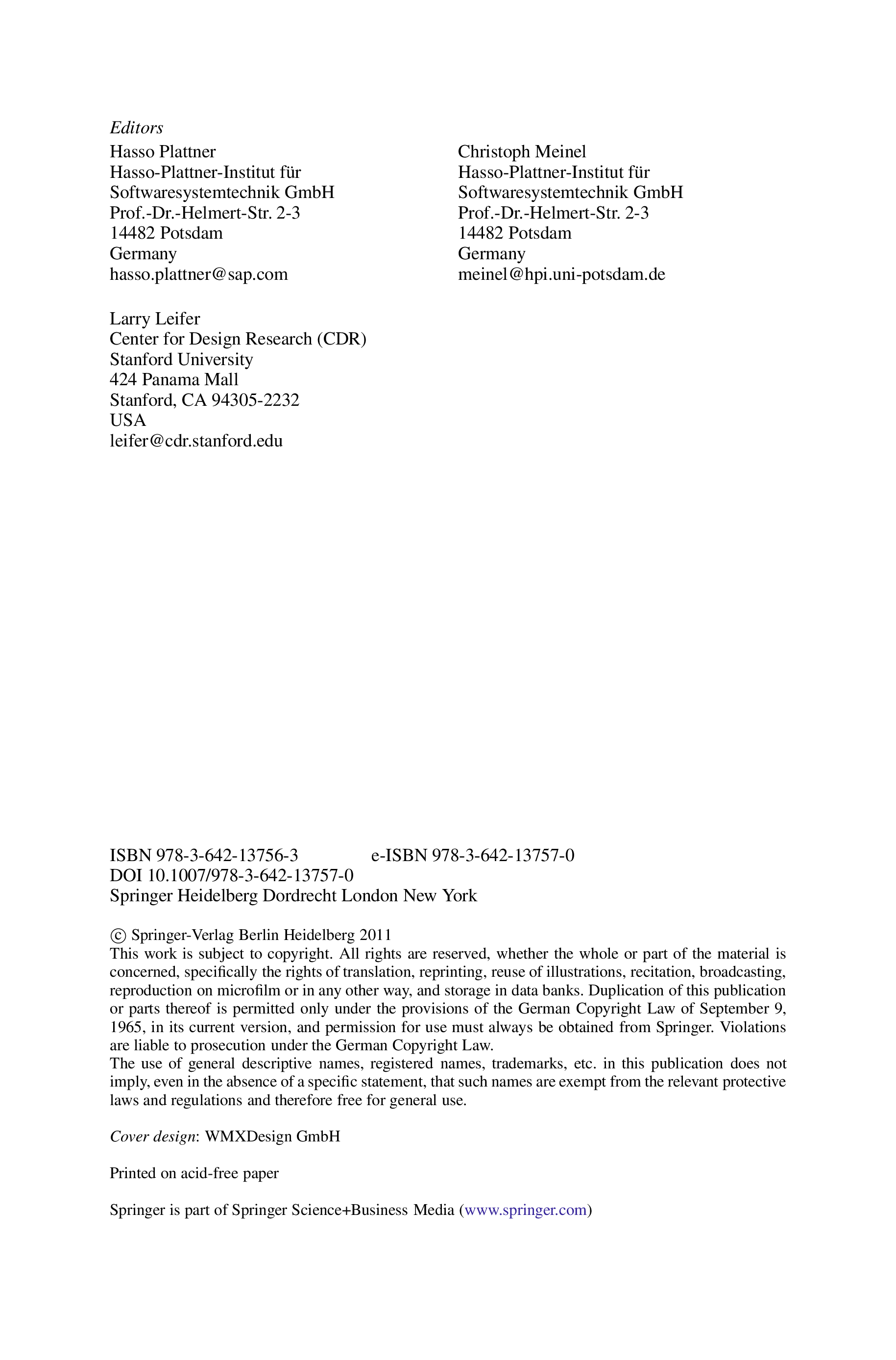 "Design Thinking: Understand Improve Apply" - читать интересную книгу автора (Hasso Plattner, Christoph Meinel, Larry Leifer) |