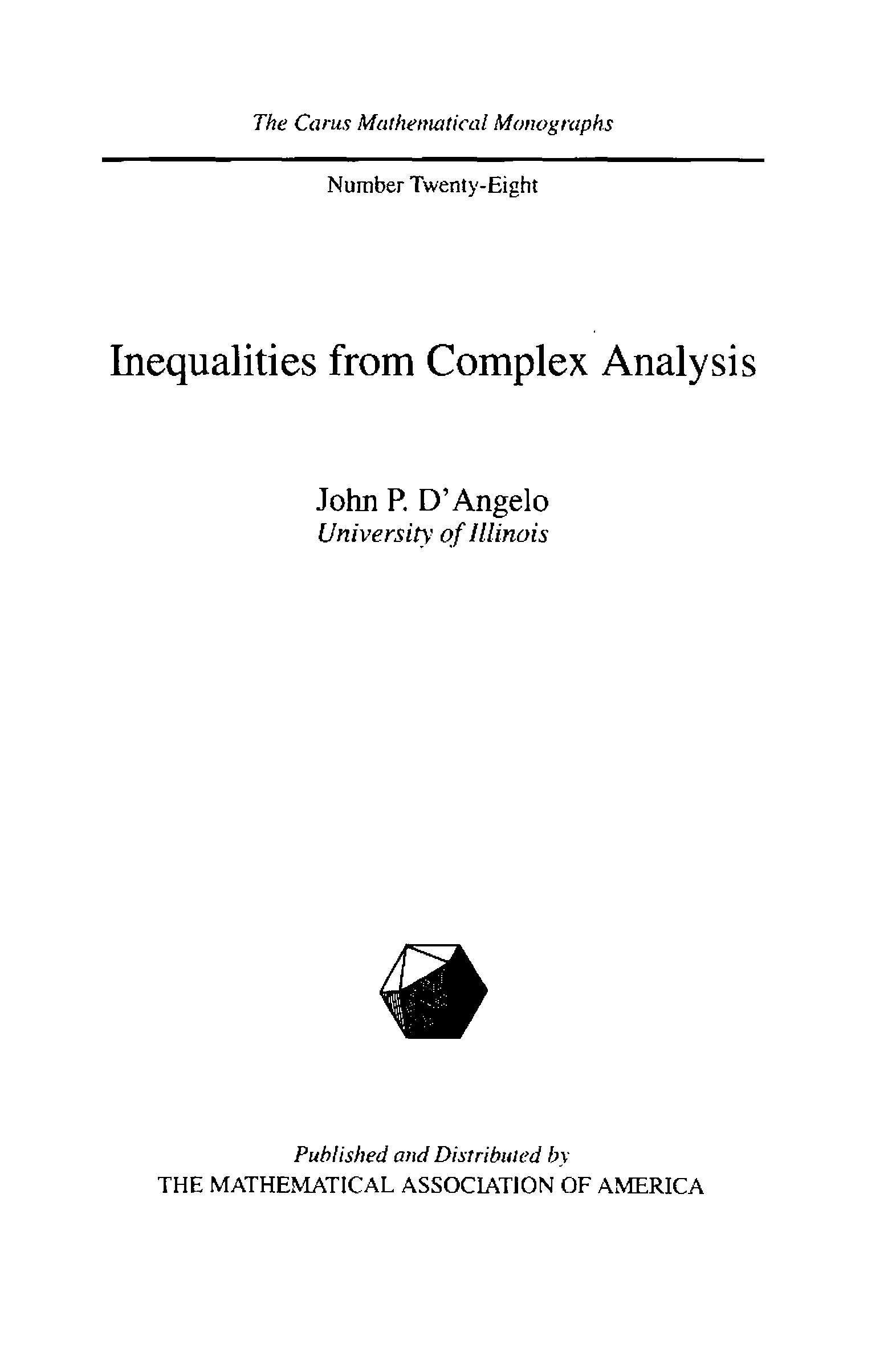 "Inequalities from Complex Analysis (Carus Mathematical Monographs)" - читать интересную книгу автора (John P. D'Angelo) |