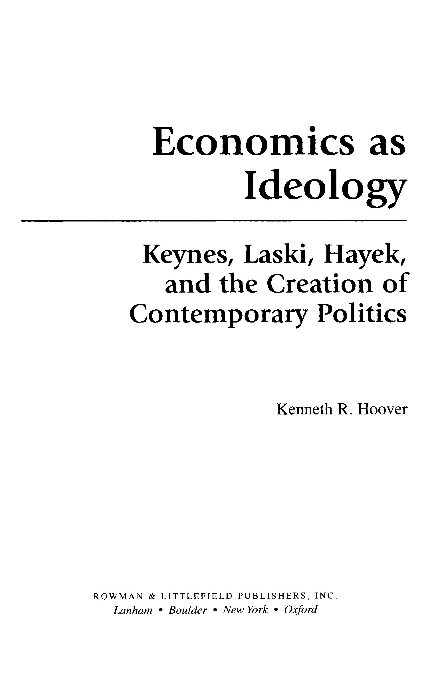 "Economics as Ideology; Keynes, Laski, Hayek, and the Creation of Contemporary Politics" - читать интересную книгу автора (Kenneth R. Hoover)