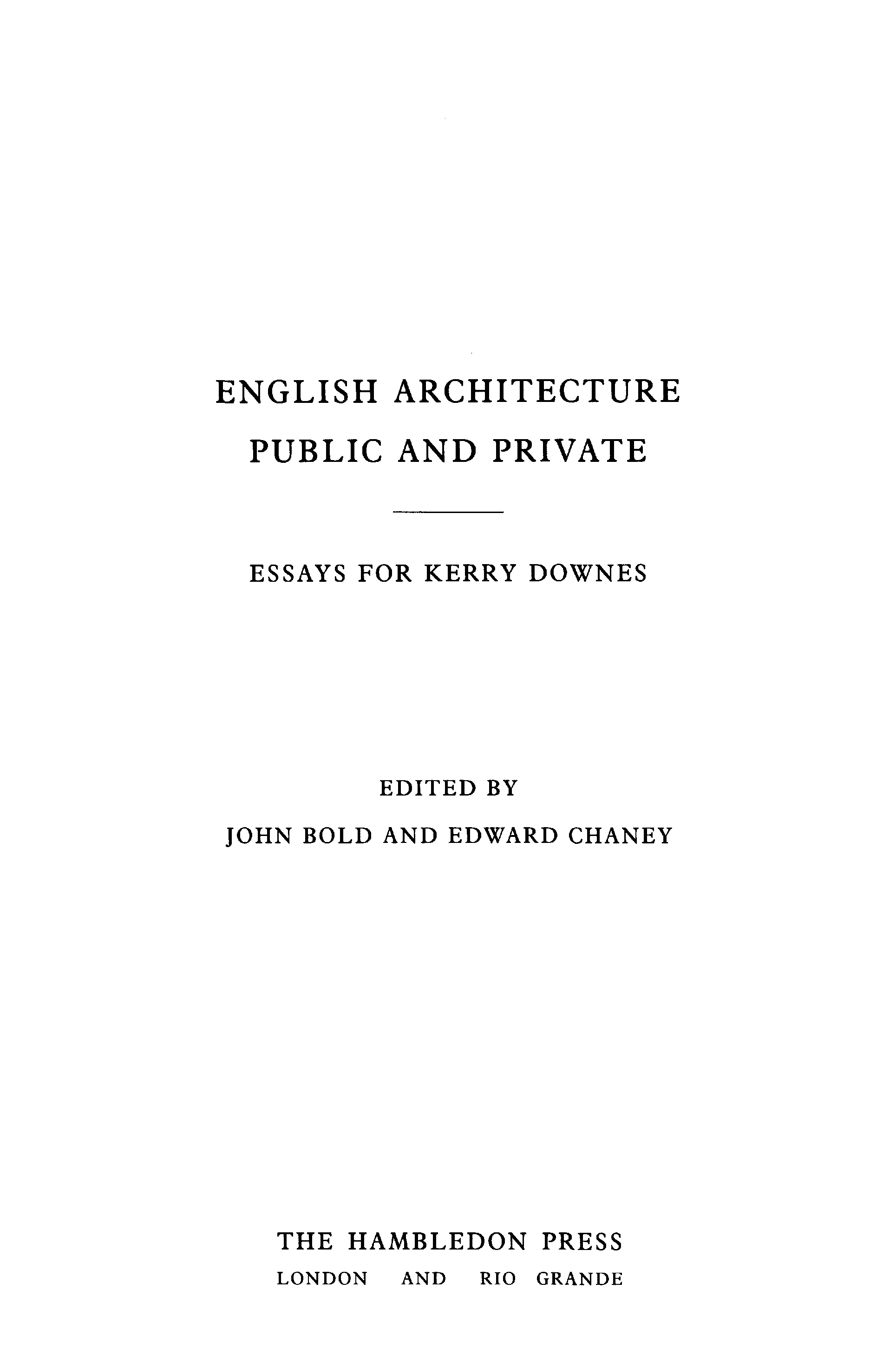 "English Architecture Public and Private: Essays for Kerry Downes" - читать интересную книгу автора (John F. Bold, Edward Chaney) |