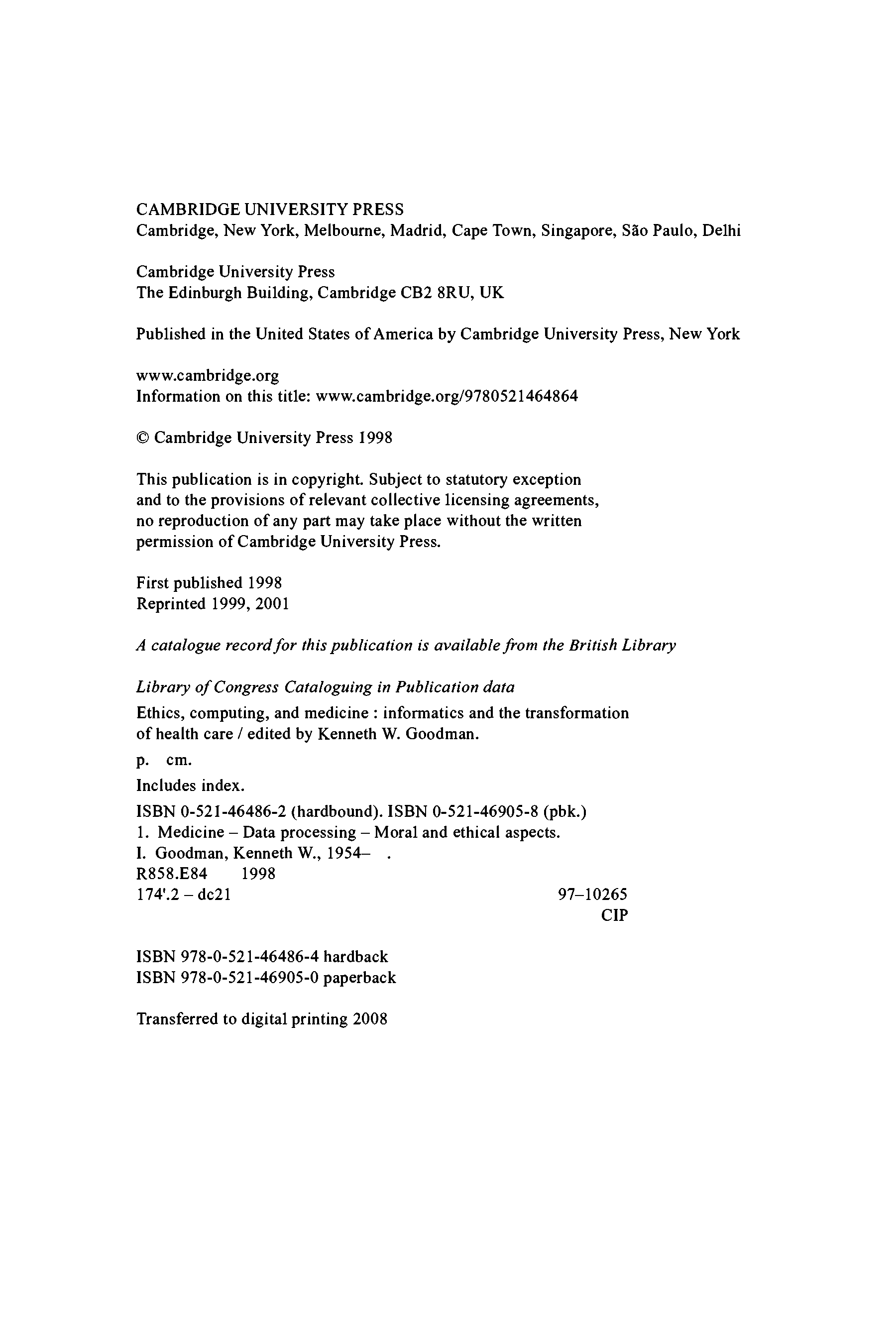 "Ethics, Computing, and Medicine: Informatics and the Transformation of Health Care" - читать интересную книгу автора (Kenneth W. Goodman) |