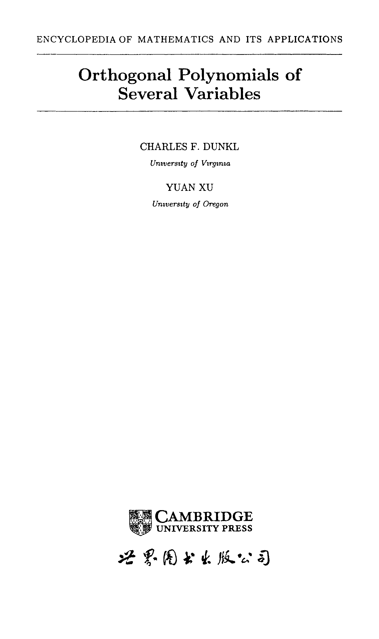 "Orthogonal Polynomials of Several Variables (Encyclopedia of Mathematics and its Applications)" - читать интересную книгу автора (Charles F. Dunkl, Yuan Xu) |