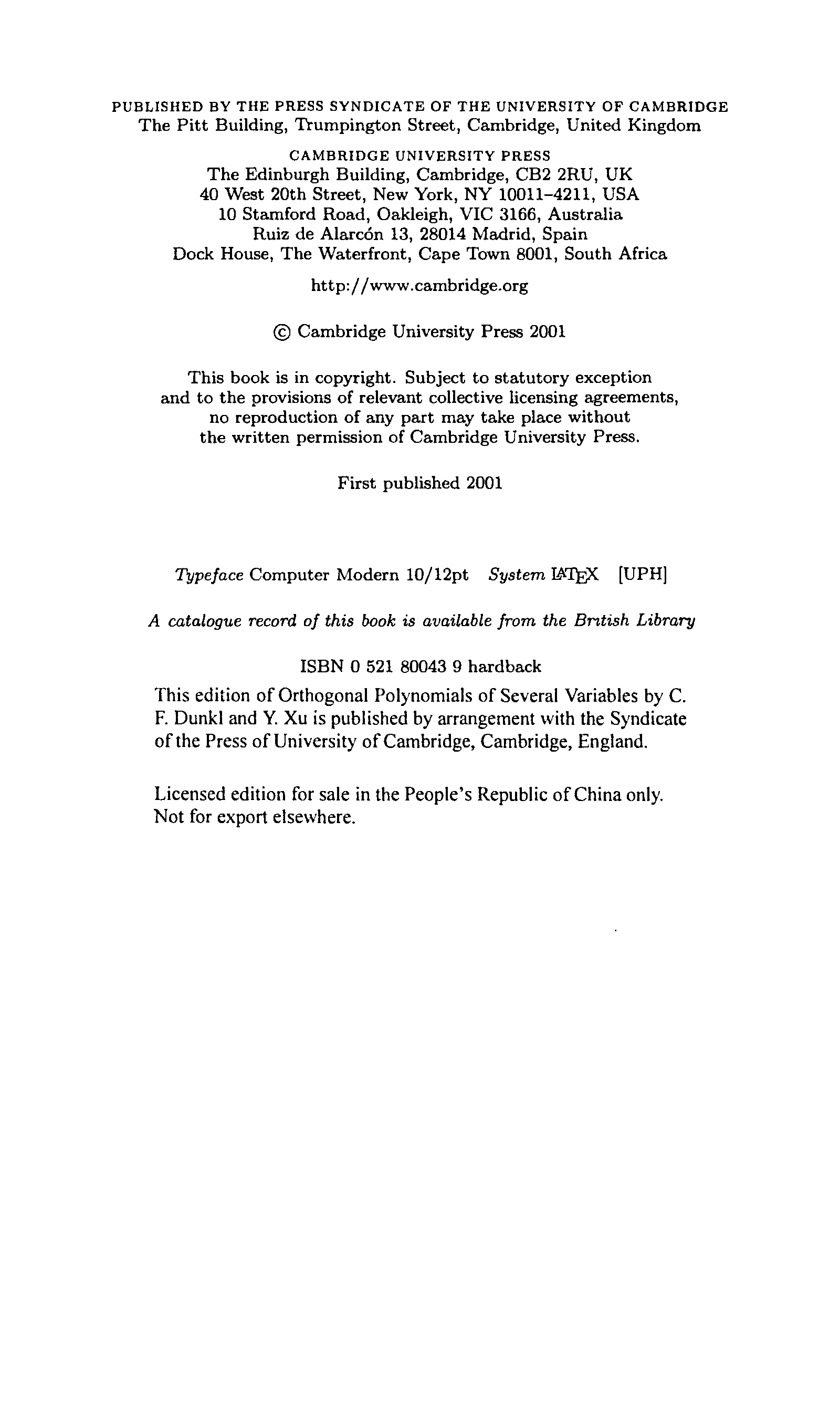 "Orthogonal Polynomials of Several Variables (Encyclopedia of Mathematics and its Applications)" - читать интересную книгу автора (Charles F. Dunkl, Yuan Xu) |