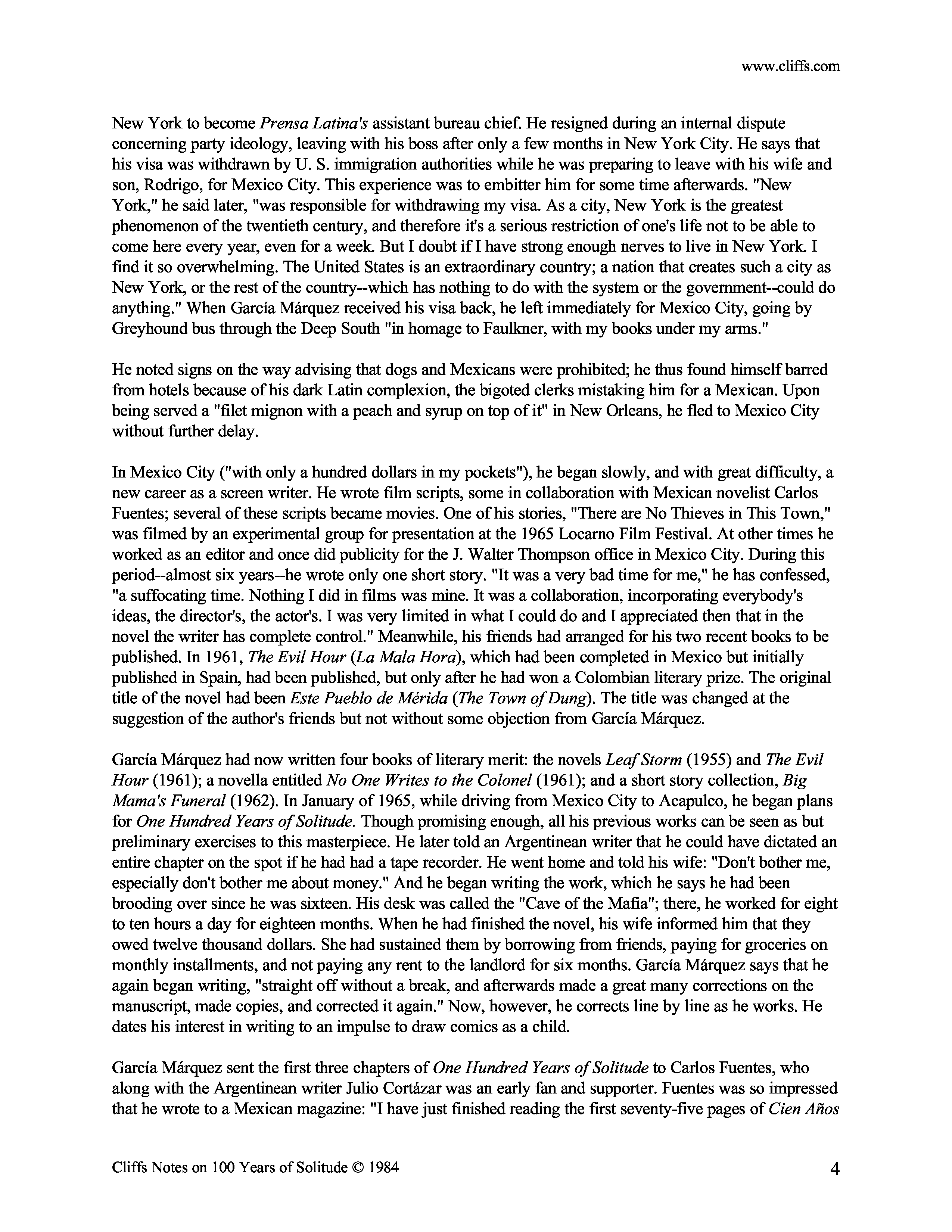 "One Hundred Years of Solitude Cliffs Notes Study (Notes)" - читать интересную книгу автора (Carl Senna) |