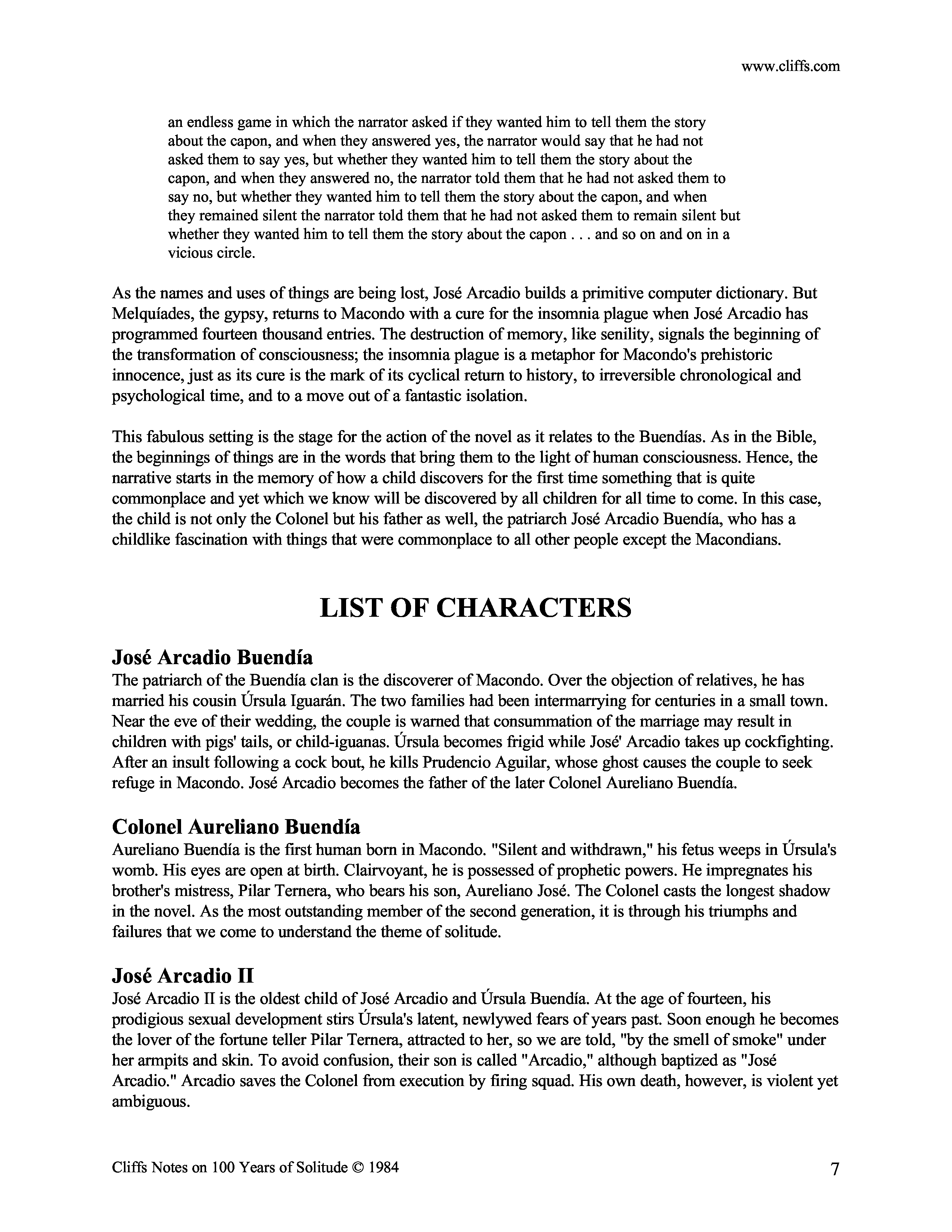 "One Hundred Years of Solitude Cliffs Notes Study (Notes)" - читать интересную книгу автора (Carl Senna) |