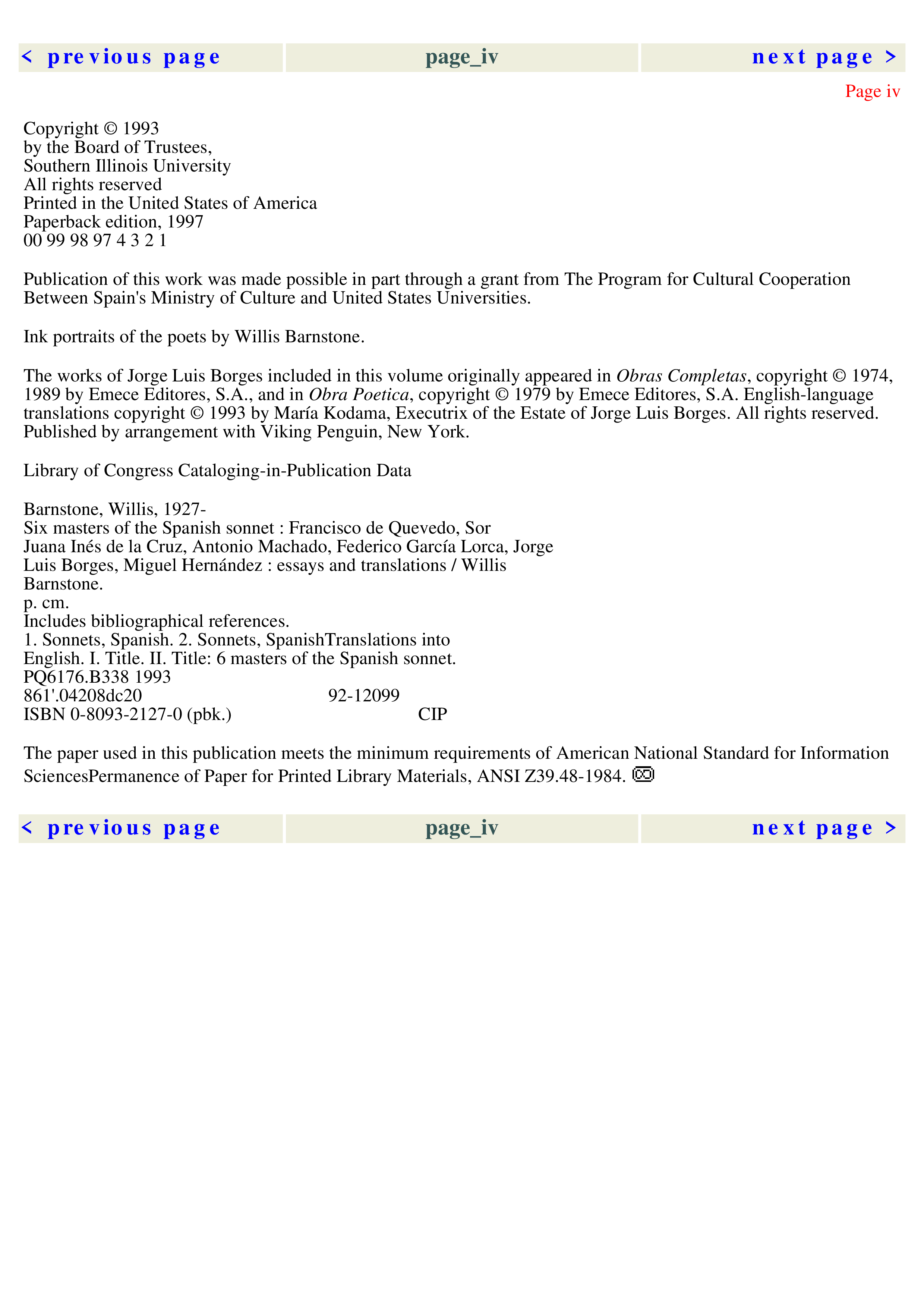 "Six Masters of the Spanish Sonnet: Francisco de Quevedo, Sor Juana Ines de la Cruz, Antonio Machado, Federico Garcia Lorca, Jorge Luis Borges, Miguel Hernandez" - читать интересную книгу автора (Willis Barnstone) |