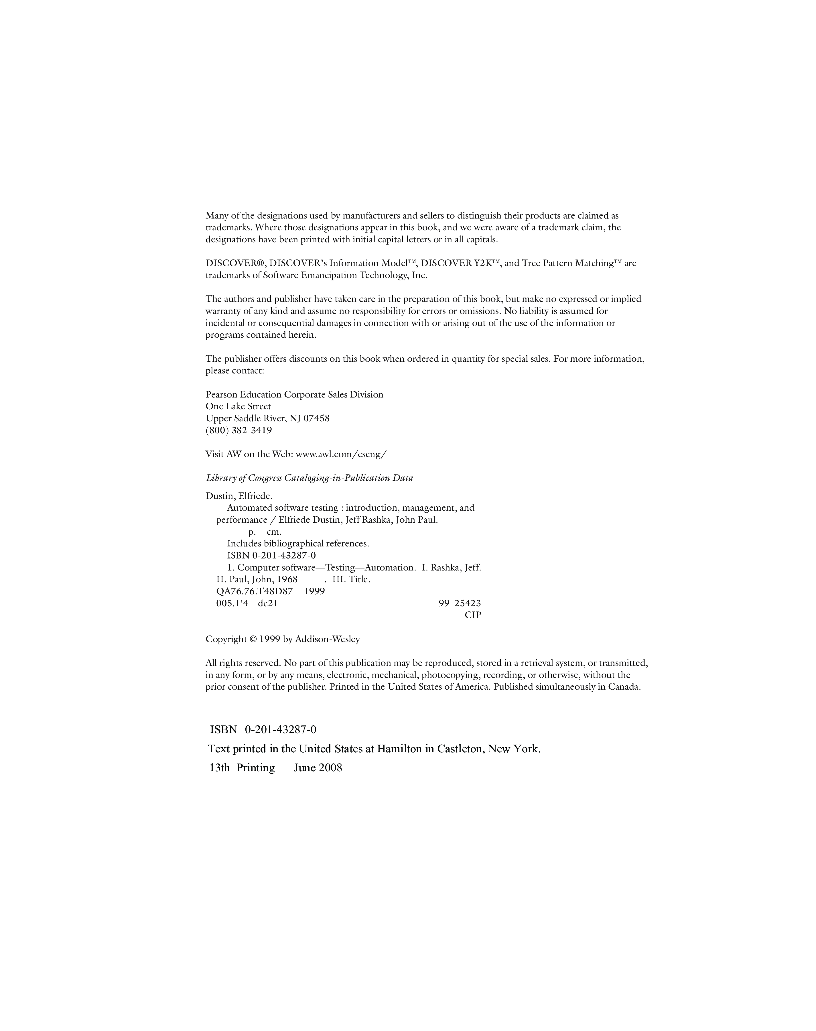 "Automated Software Testing: Introduction, Management, and Performance" - читать интересную книгу автора (Elfriede Dustin, Jeff Rashka, John Paul) |