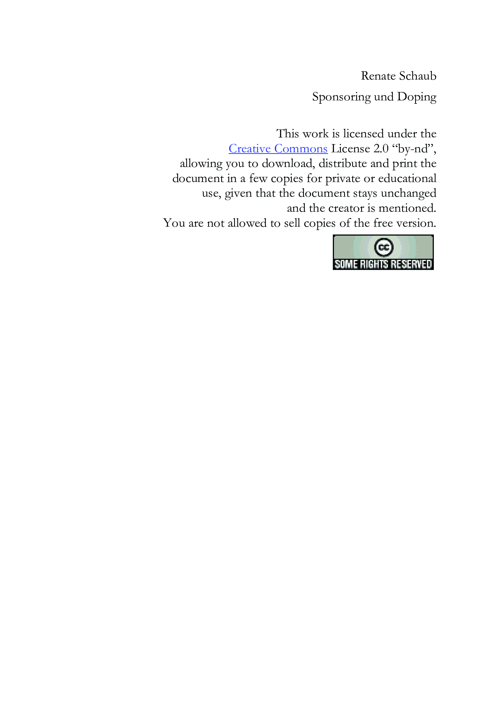 "Sponsoring und Doping: Beendigung von Sponsoringvertragen wegen Verfehlungen des Gesponserten, insbesondere in Dopingfallen" - читать интересную книгу автора (Renate Schaub) |
