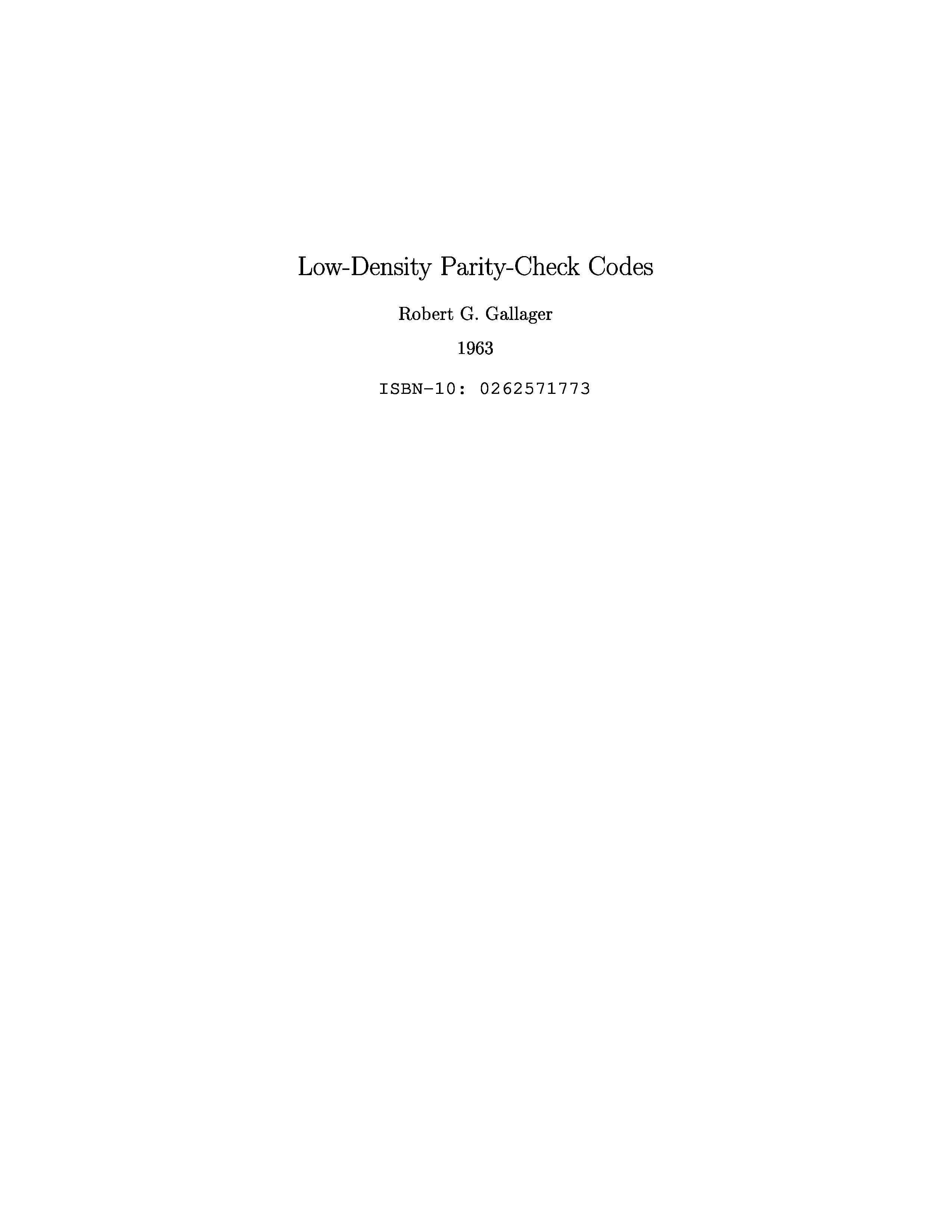 "Low-Density Parity-Check Codes" - читать интересную книгу автора (Robert G. Gallager)