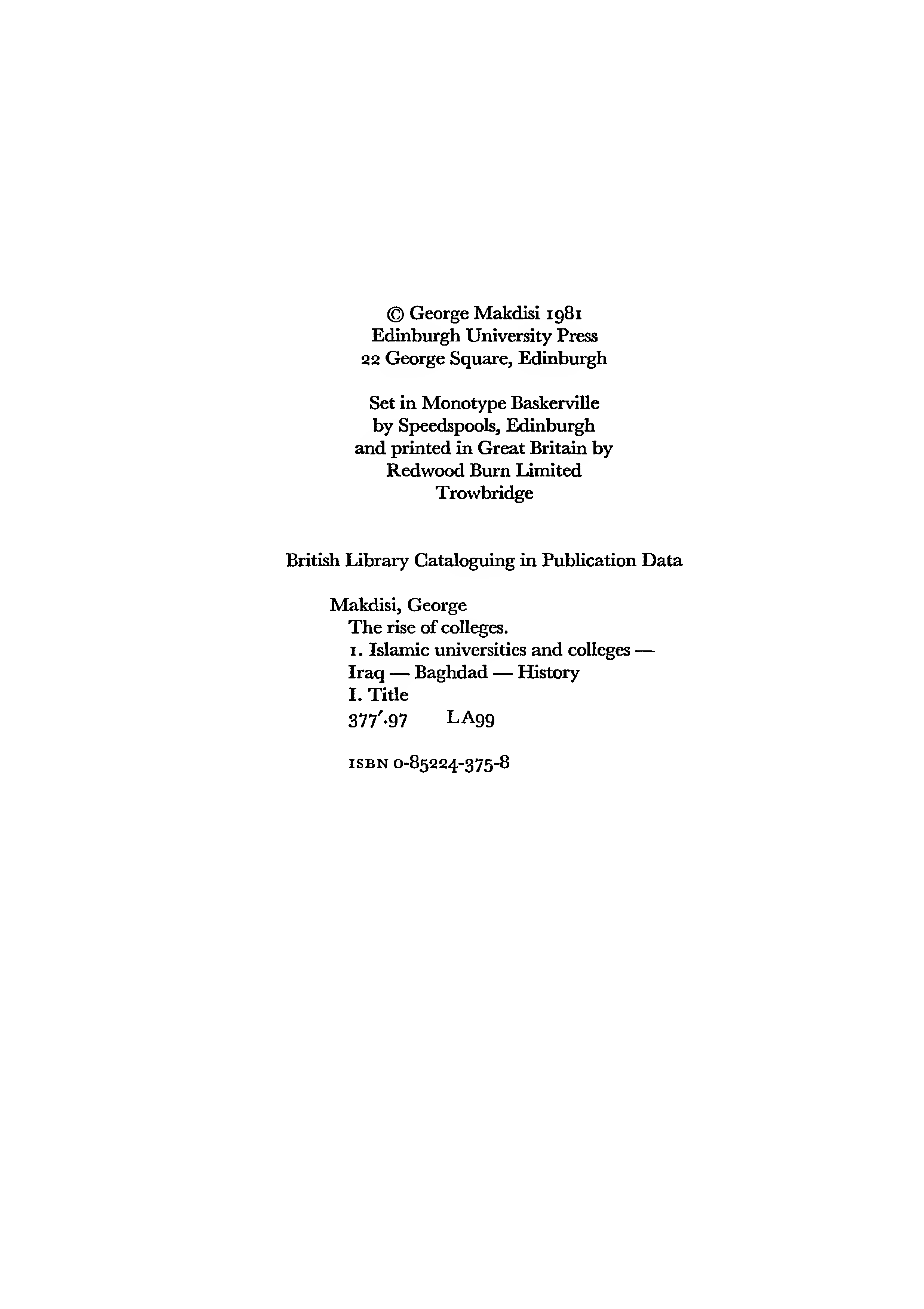 "The Rise of Colleges: Institutions of Learning in Islam and the West" - читать интересную книгу автора (George Makdisi) |