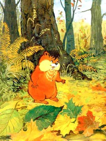 Вот он. Обыкновенный хомяк. Щёки — во! Шубейка из недорогого меха. Хома стоит на задних лапах и смотрит вдаль. Чуть какая опасность: лиса или пионеры — нырь под землю! Тут в норе Хома никого не боится. Закроет глаза и спит. Когда мы спим, мы все хорошие. Когда Хома не спит, он шныряет по полю. Зёрна собирает. Воришка, значит. Но это мы знаем, а он не знает. Видит, зёрна осыпались — хвать! Будто так и надо. Думает — ничьи. Поэтому его считают вредителем. Он так не считает. Почему? А потому! Лучший друг Суслик нередко Хому во всём слушается: Хома на целых полгода старше. Значит, умнее. Правда? «Ты хорошо сохранился, — говорит ему Суслик. — Ну, уцелел!» «А если б не уцелел?» — хмурится Хома. «Тогда бы ты не был на полгода старше», — улыбается Суслик. Такие вот они, дружки! |