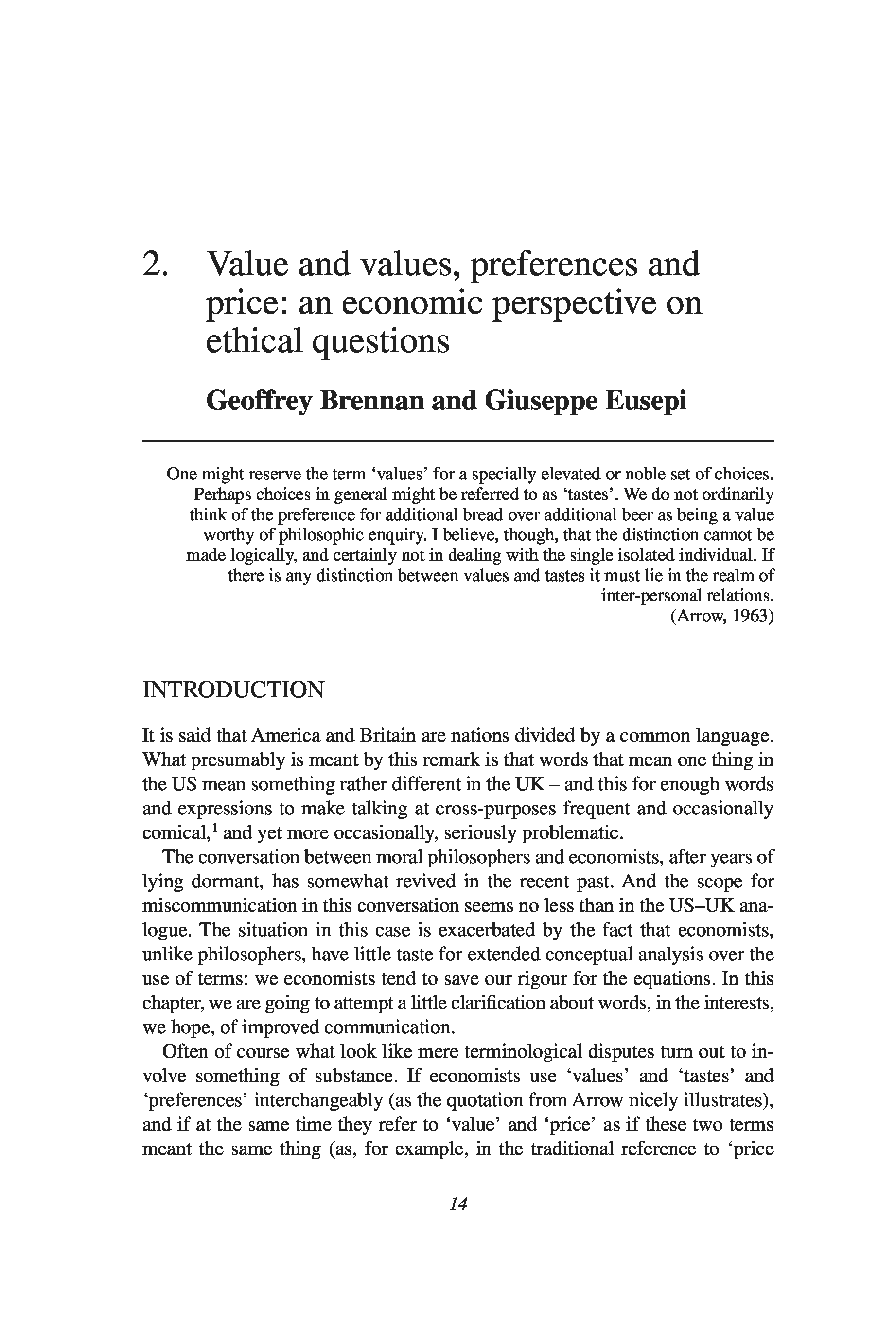 "The Economics of Ethics and the Ethics of Economics: Values, Markets and the State" - читать интересную книгу автора (Geoffrey Brennan, Giuseppe Eusepi)