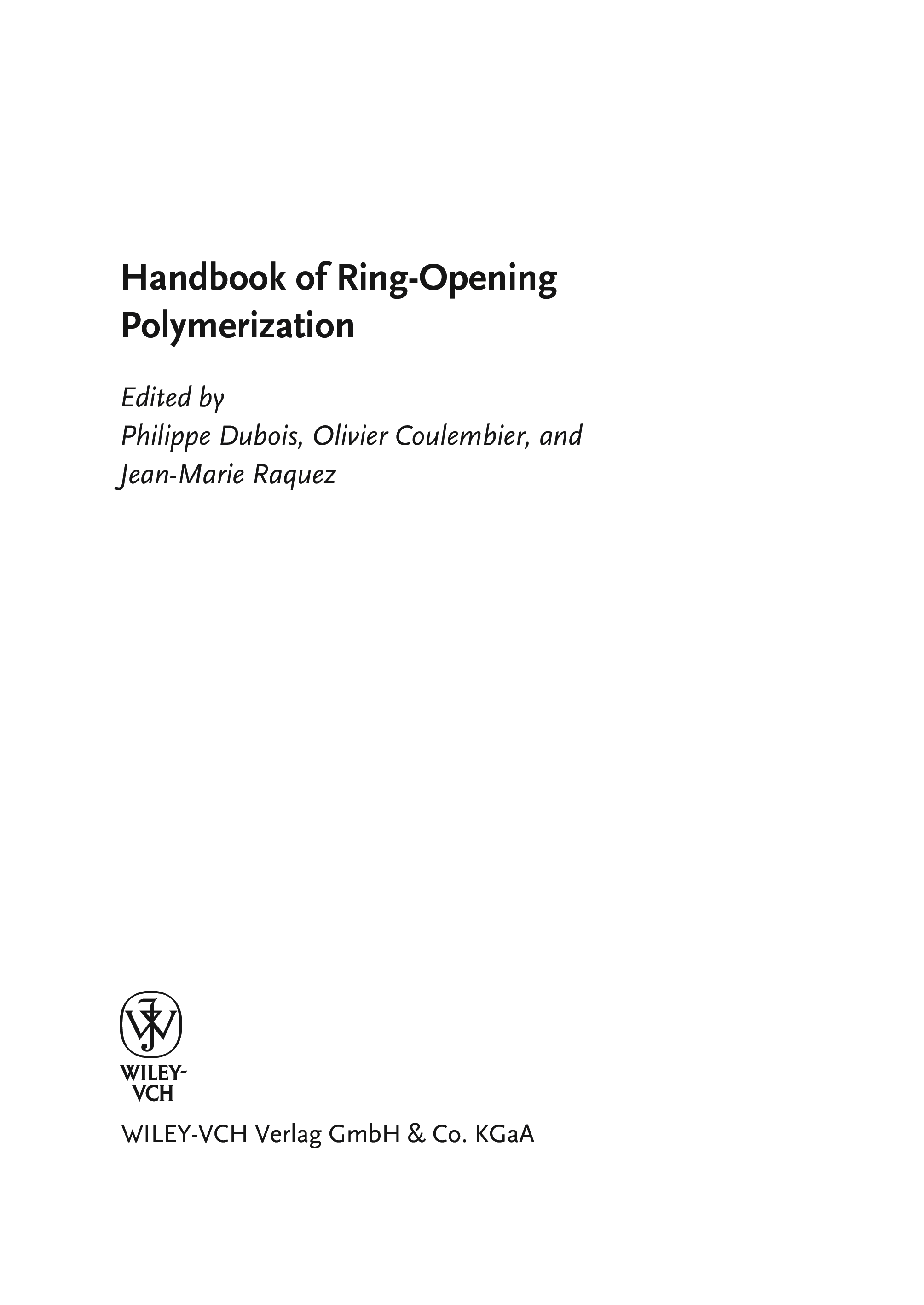 "Handbook of Ring-Opening Polymerization" - читать интересную книгу автора (Philippe Dubois, Olivier Coulembier, Jean-Marie Raquez) |