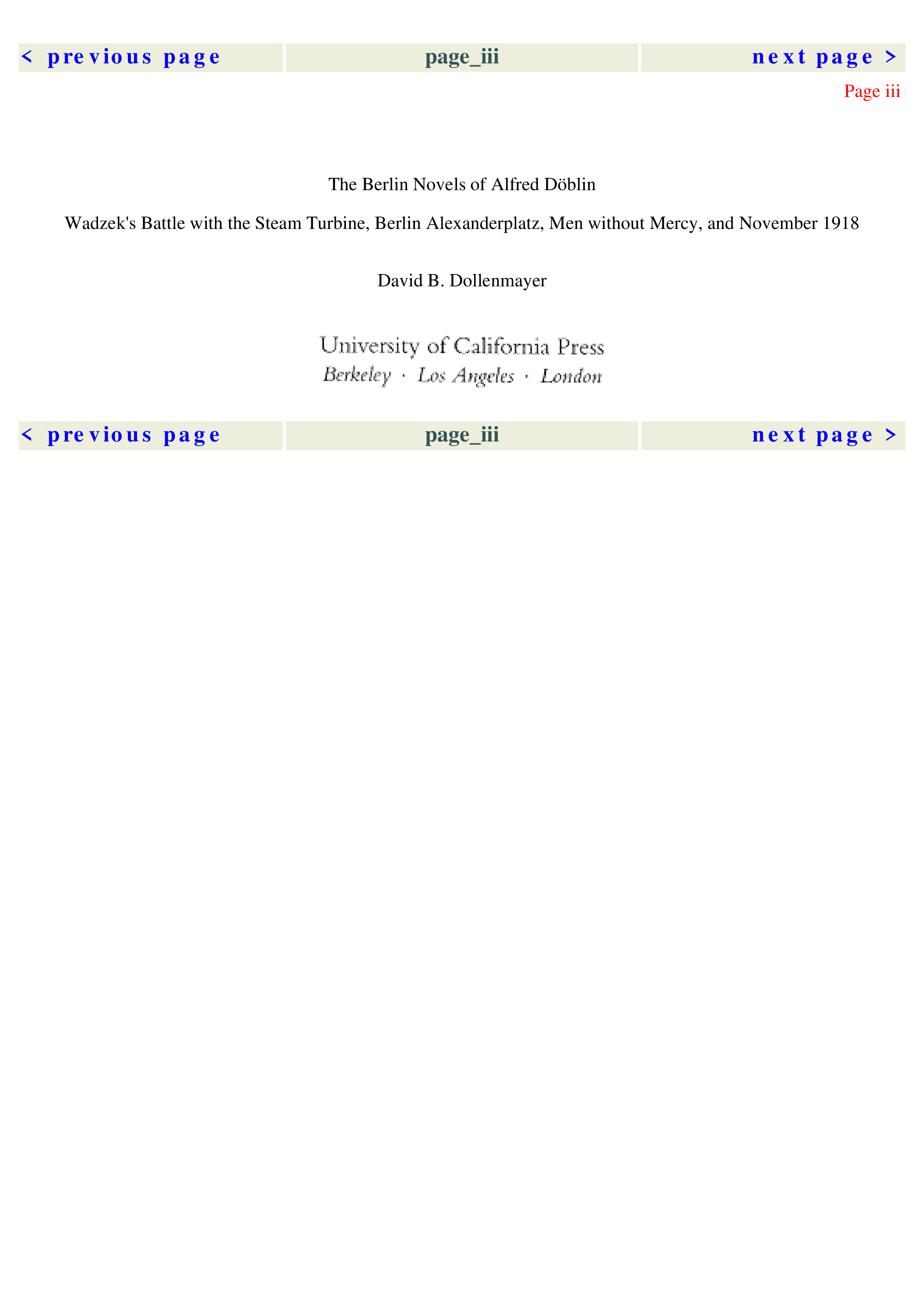 "The Berlin Novels of Alfred Doblin: Wadzek's Battle with the Steam Turbine, Berlin Alexanderplatz, Men without Mercy and November, 1918" - читать интересную книгу автора (David B. Dollenmayer) |