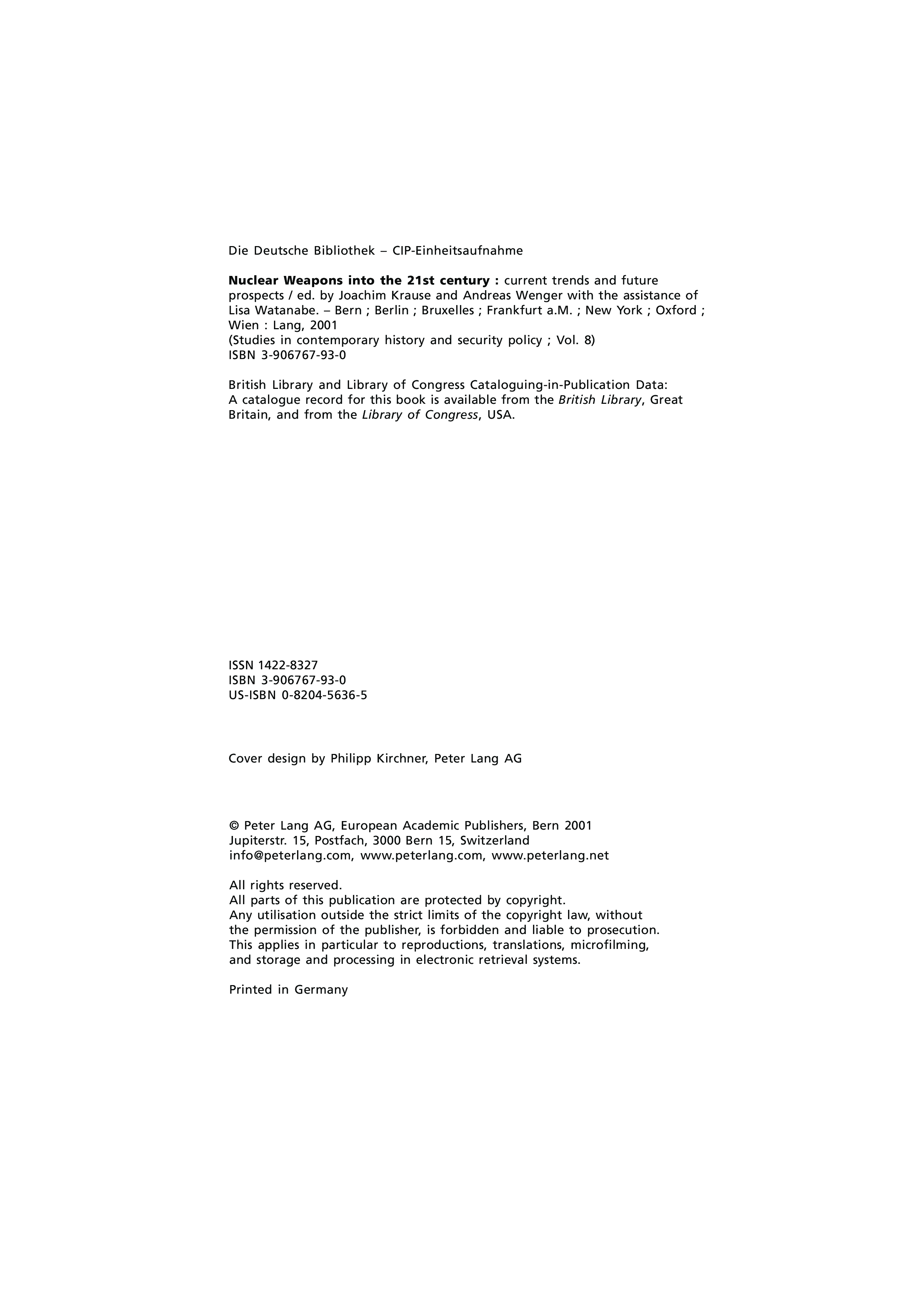 "Nuclear Weapons into the 21st Century: Current Trends and Future Prospects (Studien Zu Zeitgeschichte Und Sicherheitspolitik, V. 8.)" - читать интересную книгу автора (Joachim Krause, Andreas Wenger) |