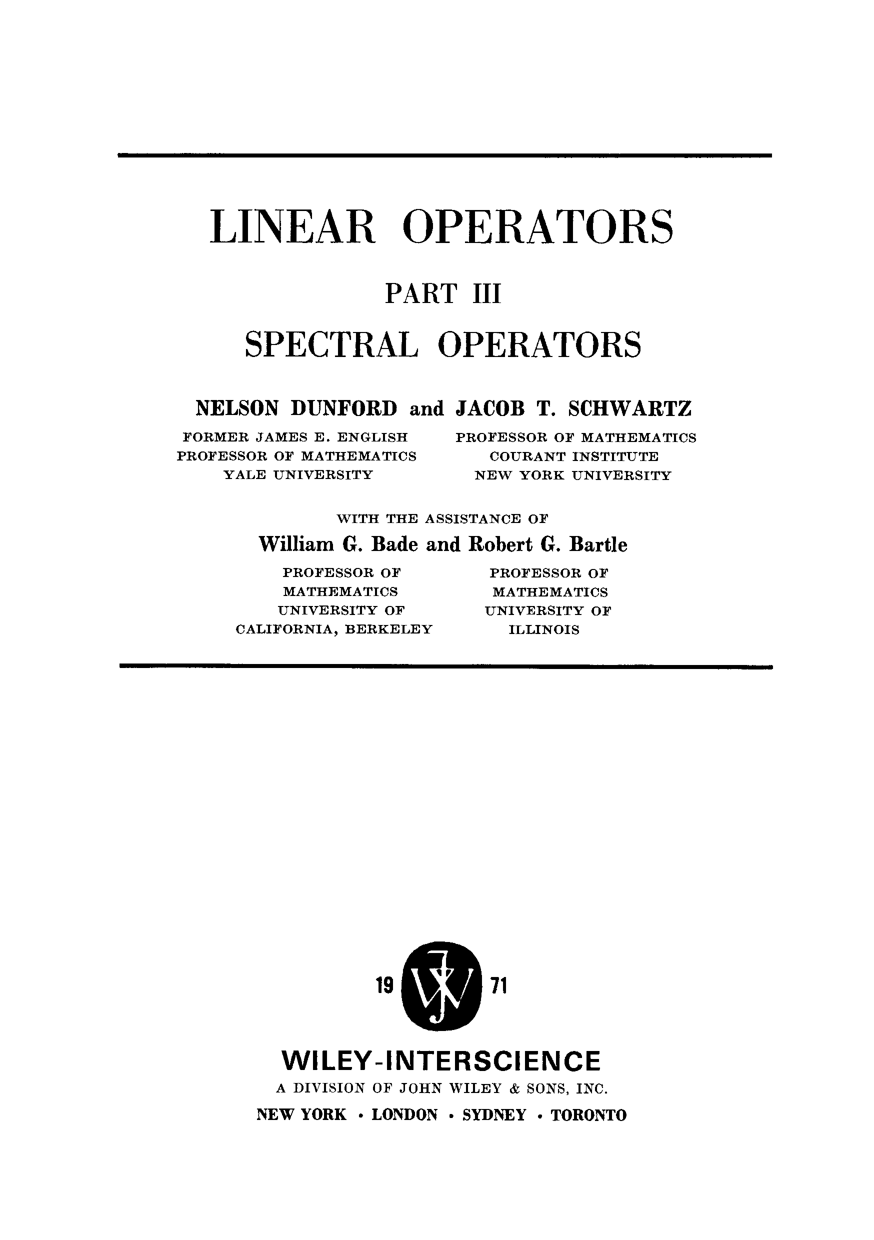 "Linear Operators, Part III: Spectral Operators (Pure and Applied Mathematics: A Series of Texts and Monographs)" - читать интересную книгу автора (Nelson Dunford, Jacob T. Schwartz, William G. Bade, Robert G. Bartle)