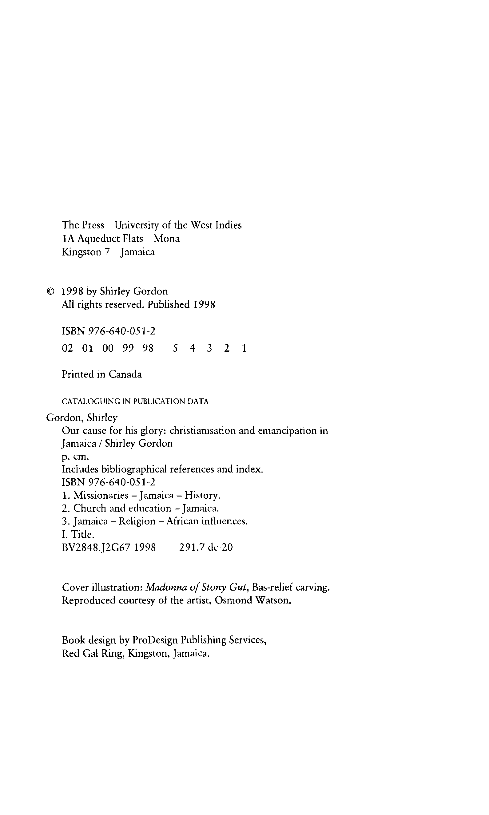 "Our Cause for His Glory: Christianization and Emancipation in Jamaica" - читать интересную книгу автора (Shirley C. Gordon) |