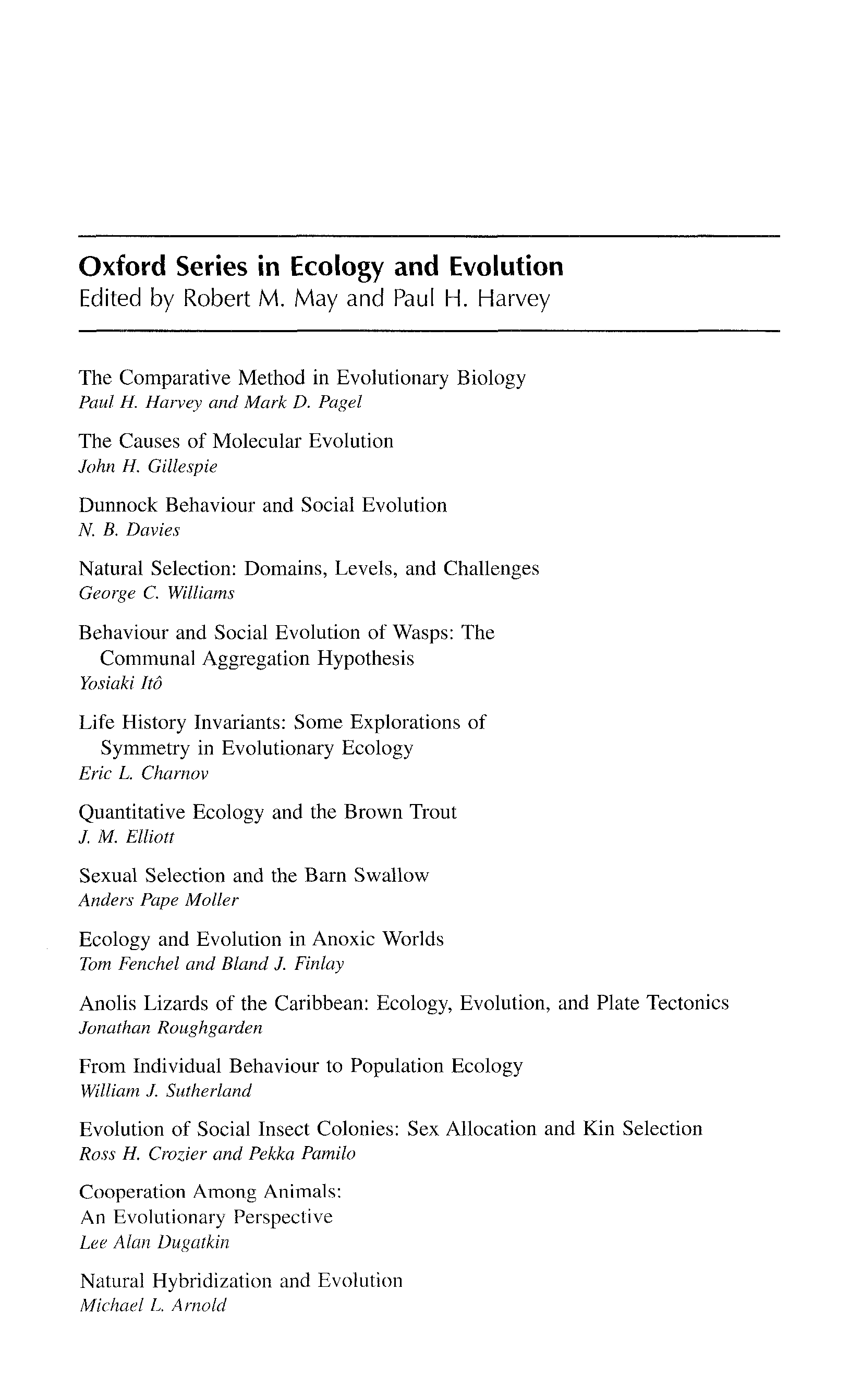 "Cooperation among Animals: An Evolutionary Perspective (Oxford Series in Ecology and Evolution)" - читать интересную книгу автора (Lee Alan Dugatkin) |