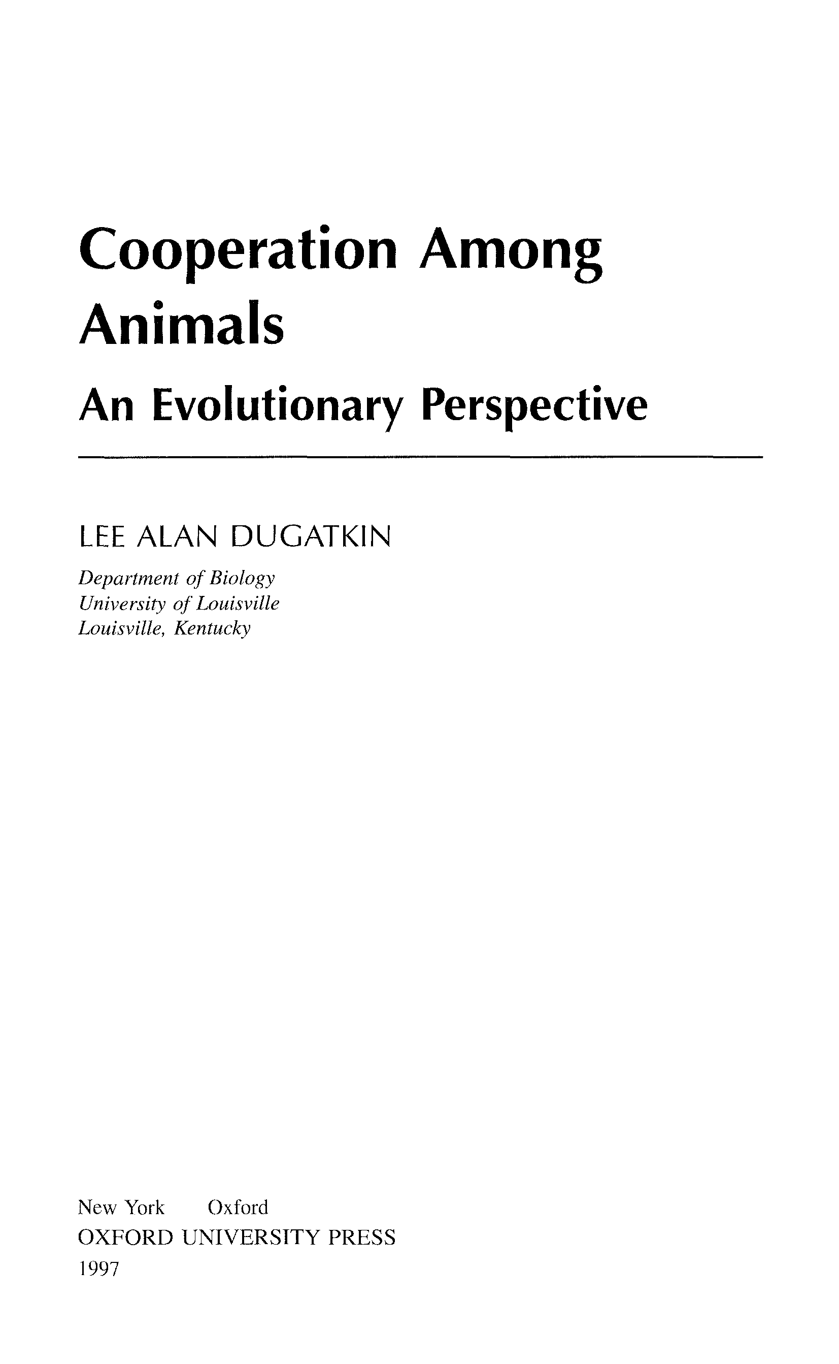 "Cooperation among Animals: An Evolutionary Perspective (Oxford Series in Ecology and Evolution)" - читать интересную книгу автора (Lee Alan Dugatkin) |