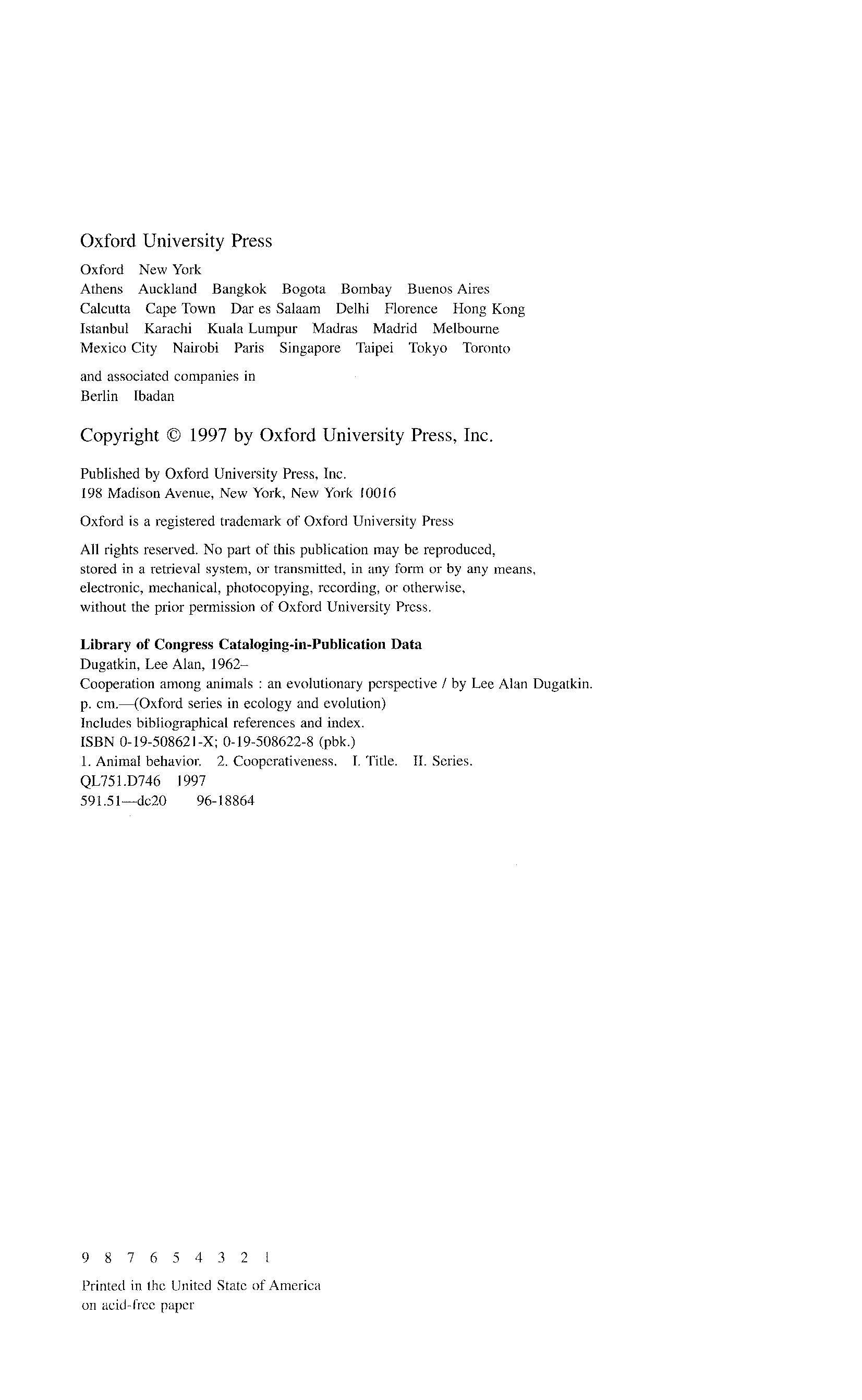 "Cooperation among Animals: An Evolutionary Perspective (Oxford Series in Ecology and Evolution)" - читать интересную книгу автора (Lee Alan Dugatkin) |