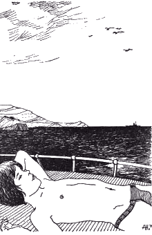 "Коста Брава" - читать интересную книгу автора (Бернар Фриц)Глава 7Прошла еще одна ночь. Карбюратор все чаще и чаще сдавал сбои, а французское побережье еще не появилось. Напрасно мы вглядывались с помощью моего бинокля на север. На горизонте не было ни малейшего намека на сушу. Сальвадор, по-видимому отклонился от курса на восток, вследствие недавней бури. Мы даже не знали, где примерно находимся. Ветер стих, парус беспомощно болтался на мачте и легкий бриз неумолимо уводил нас на юг. Но самое неприятное в нашей ситуации было то, что запасы продовольствия неумолимо истекали: нам уже с трудом удавалось экономить. По моим примерным подсчтетам, мы находились где-то в районе Порт-Вандреса, как раз после пересечения испанской границы… Усевшись на передней палубе, Хуан Хосе осматривал в бинокль горизонт. Он покрыл свои плечи кристально белым полотенцем, и эта белизна резко контрастировала с его загоревшей кожей. Чтобы уберечь голову от палящих лучей солнца, он нацепил самодельную панамку, изготовленную из газетной бумаги. Я мог бы наблюдать за ним часами без перерыва: богатство его натуры меня просто притягивало. Иногда он оборачивался, чтобы лучезарно мне улыбнуться, показывая свои белые, как жемчужинки, искрящиеся на солнце, зубы. Или же просто он поднимал в приветствии свою руку, словно маленький проказник. На левом запястье сверкали позолотой подаренные мною часы, которыми он постоянно любовался. Чуть позже он растянулся на крыше кабинки. За исключением маленьких узких плавок на нем не было никакой одежды. Лежа на спине, он подставлял свое совершенное тело солнечным лучам и я не мог оторвать взгляда от этой красоты. Правой рукой он машинально теребил трос, спадающий с парусной мачты. Его развевающаяся на ветру черная шевелюра спадала на лоб, вычерчивая причудливые прядки. Своими коричневыми глазами он смотрел на небо. Словно тонкие волоски, его длинные черные ресницы выделялись на его загоревшем красивом лице. Его грудь медленно поднималась и опускалась в такт дыхания. Его грациозные, красиво выгнутые ноги, без конца двигались. Глядя на него, я подумал об отборном чистокровном жеребце… Время от времени, он поворачивал в мою сторону голову и задавал вопросы, типа: «Что ты делал, когда тебе было 13 лет?»