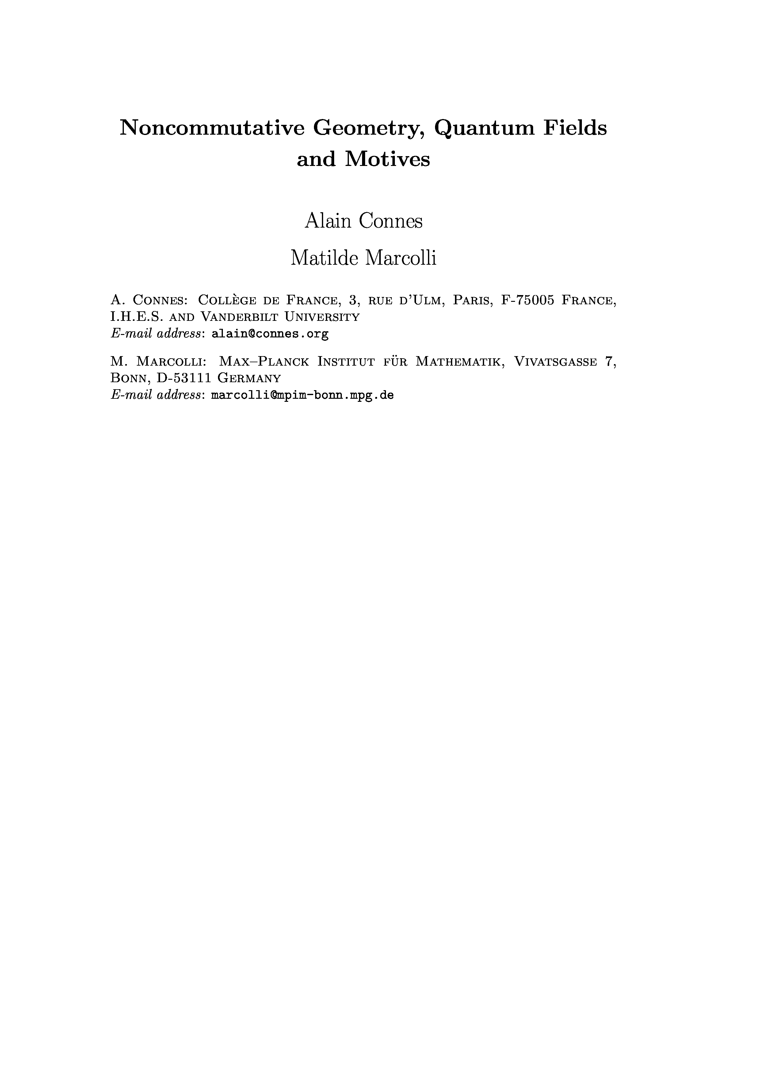"Noncommutative Geometry, Quantum Fields, and Motives" - читать интересную книгу автора (Alain Connes, Matilde Marcolli) |