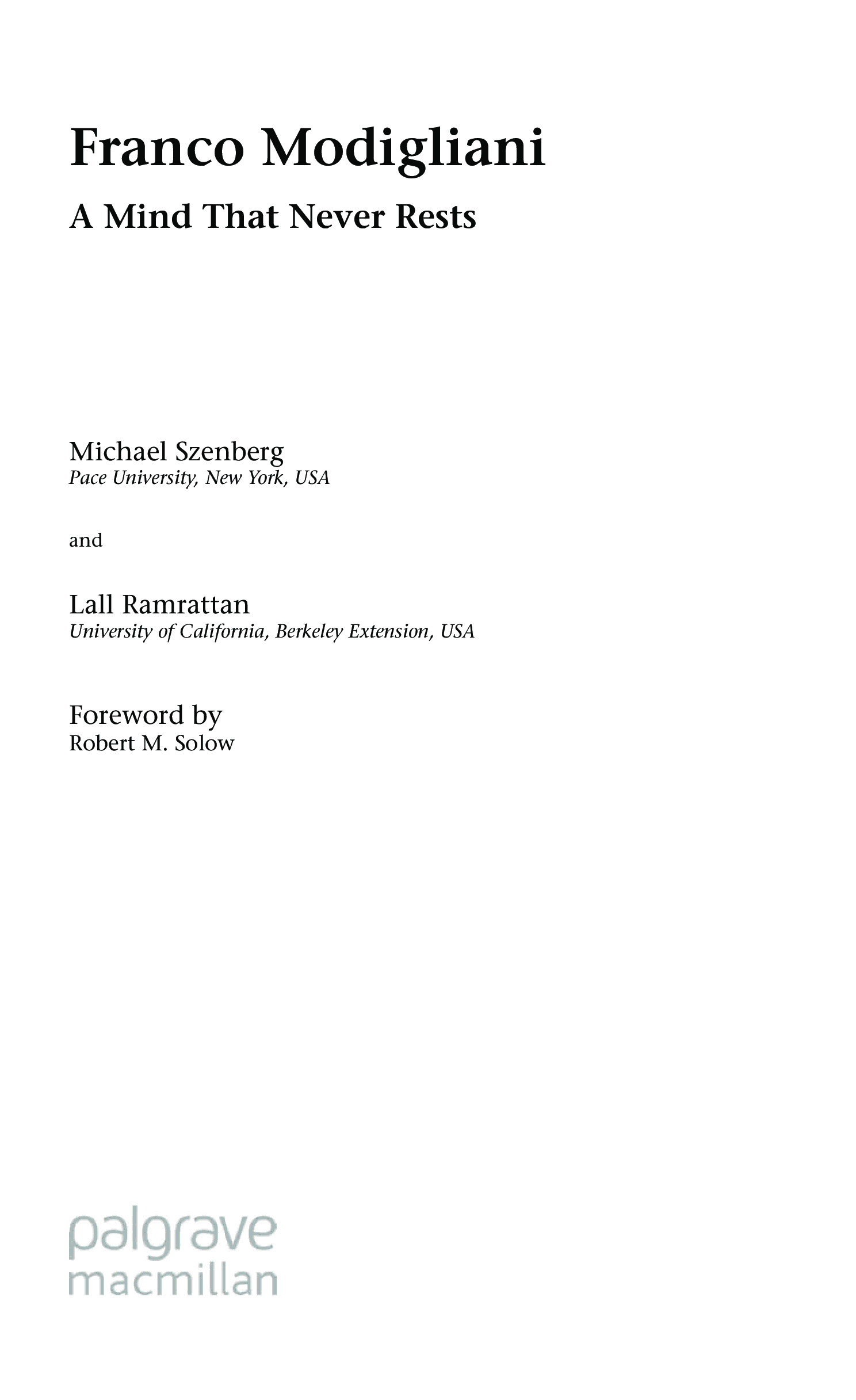 "Franco Modigliani: An Intellectual Biography (Great Thinkers in Economics)" - читать интересную книгу автора (Michael Szenberg, Lall Ramrattan) |