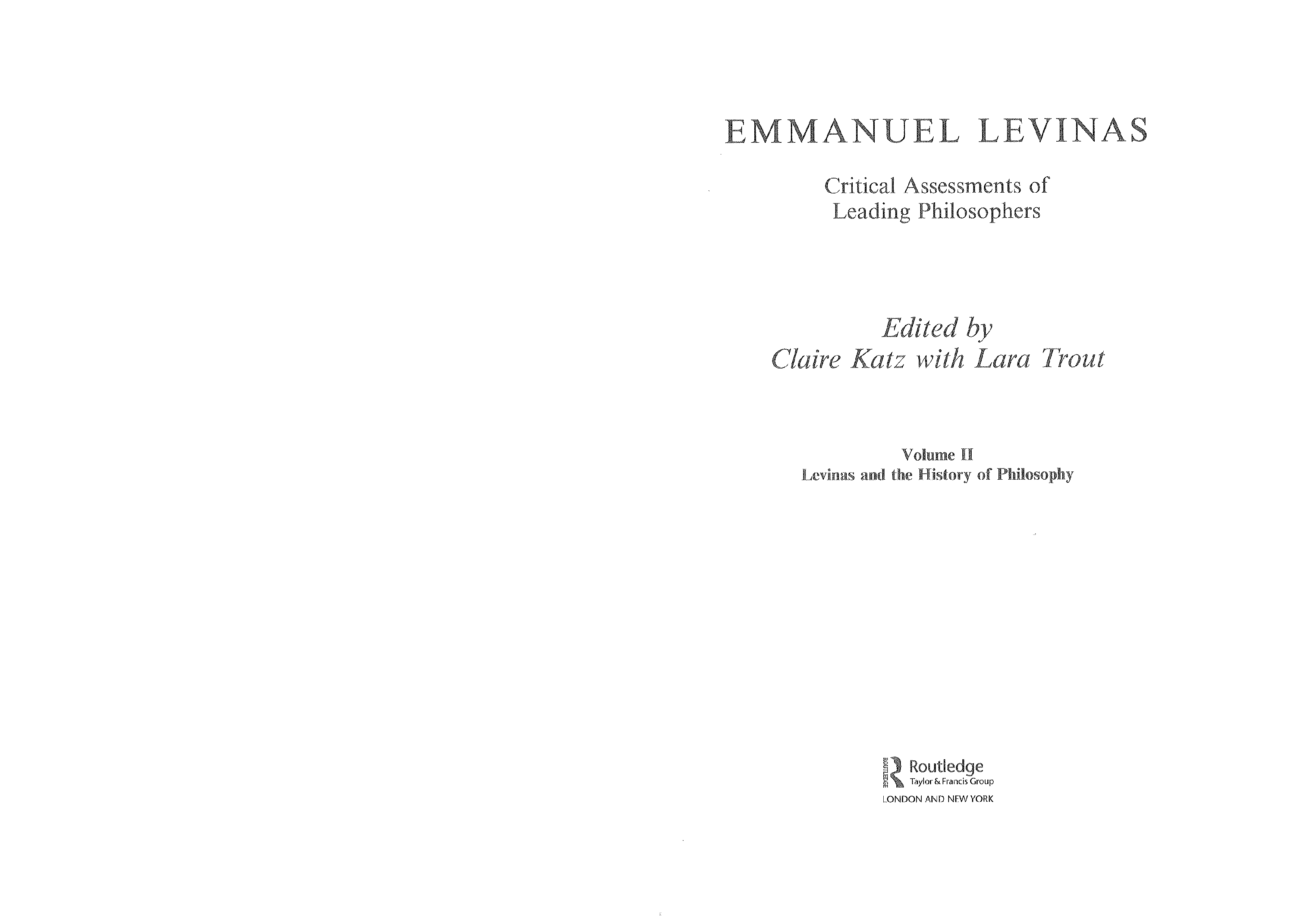 "Emmanuel Levinas Critical Assessments V2: Critical Assessments of Leading Philosophers" - читать интересную книгу автора (Claire Elise Katz) |