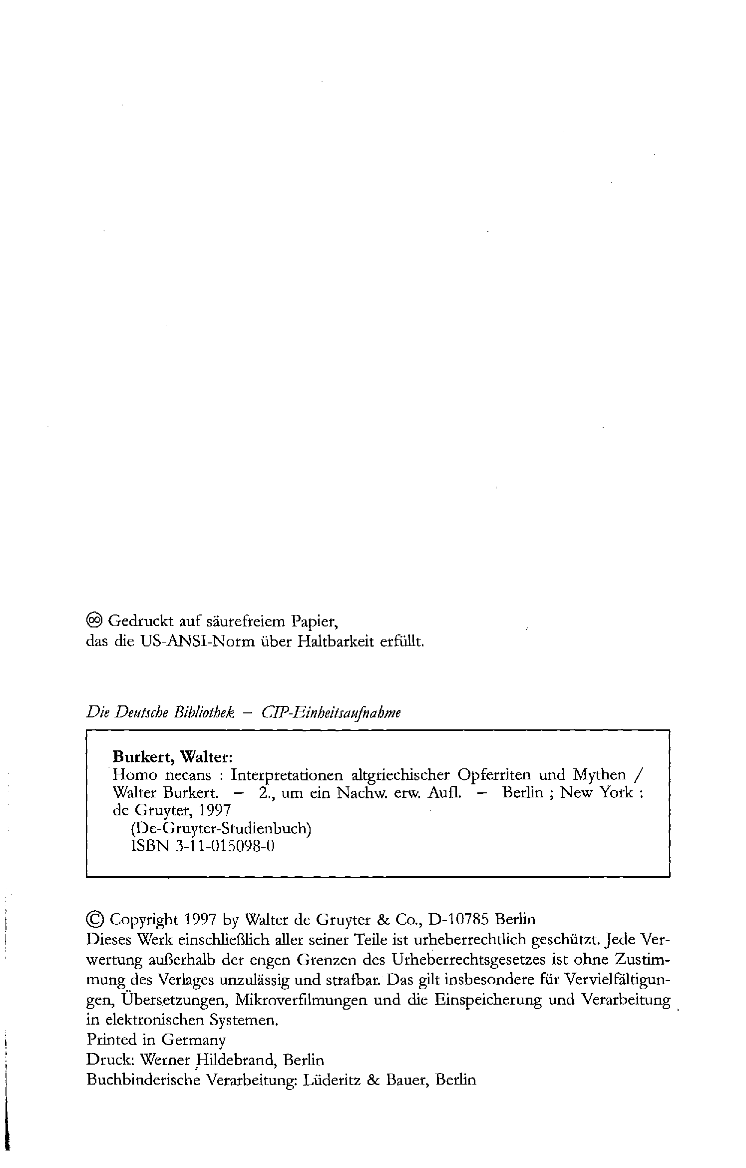 "Homo Necans. Interpretationen altgriechischer Opferriten und Mythen (2., um ein Nachw. erw. Aufl.)" - читать интересную книгу автора (Walter Burkert) |