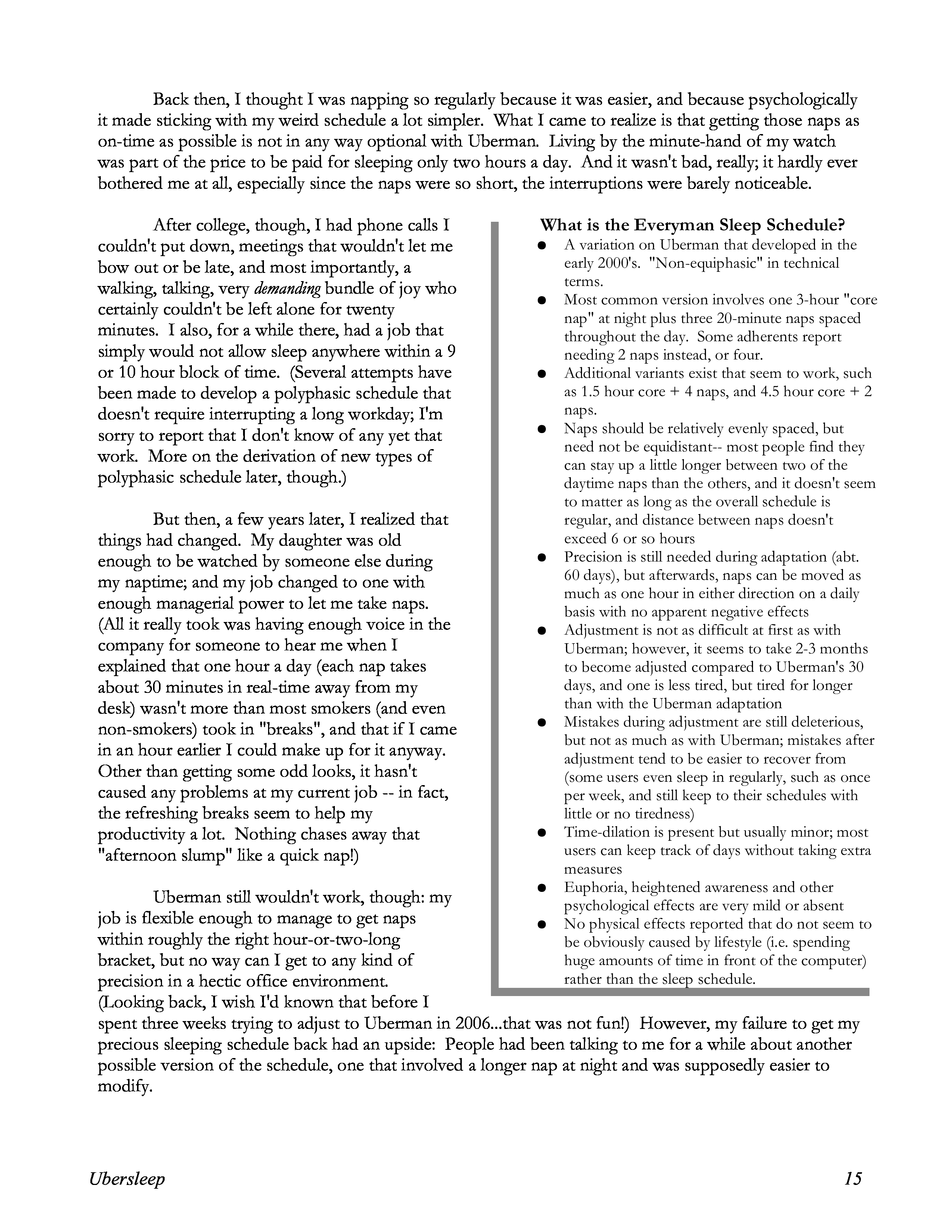"Ubersleep: Nap-Based Sleep Schedules and the Polyphasic Lifestyle" - читать интересную книгу автора (Pure Doxyk) |