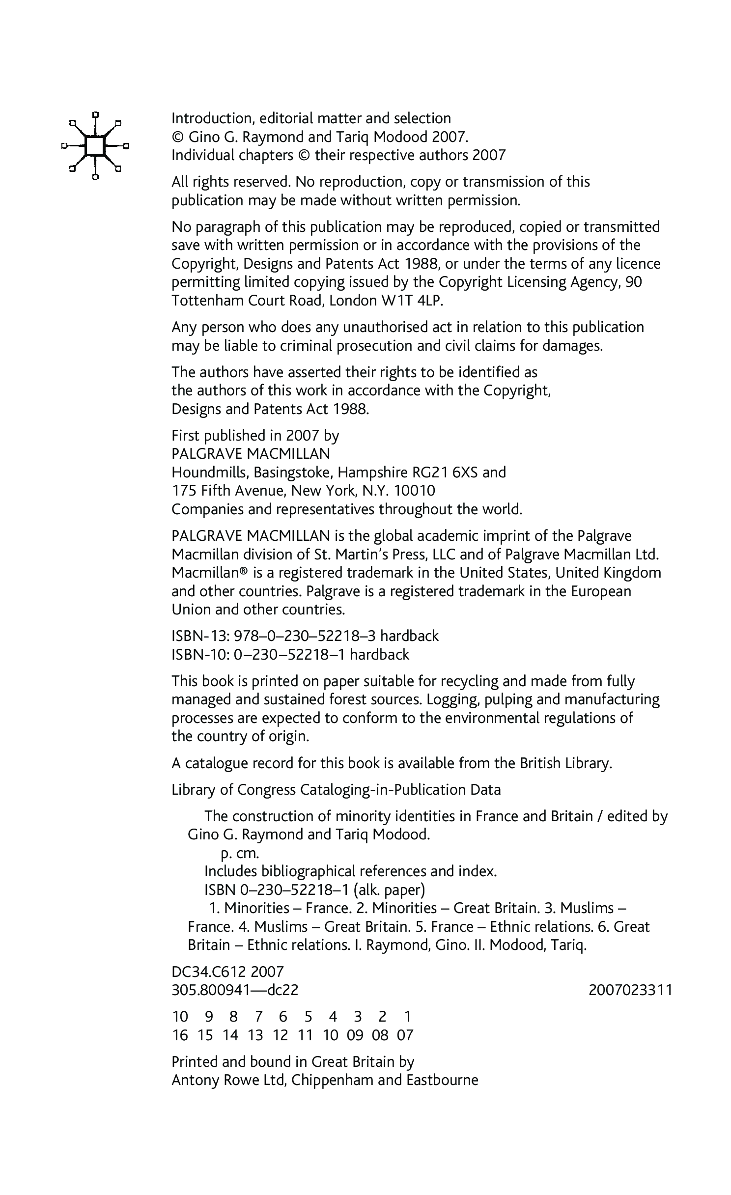 "The Construction of Minority Identities in France and Britain" - читать интересную книгу автора (Gino G. Raymond, Tariq Modood)
