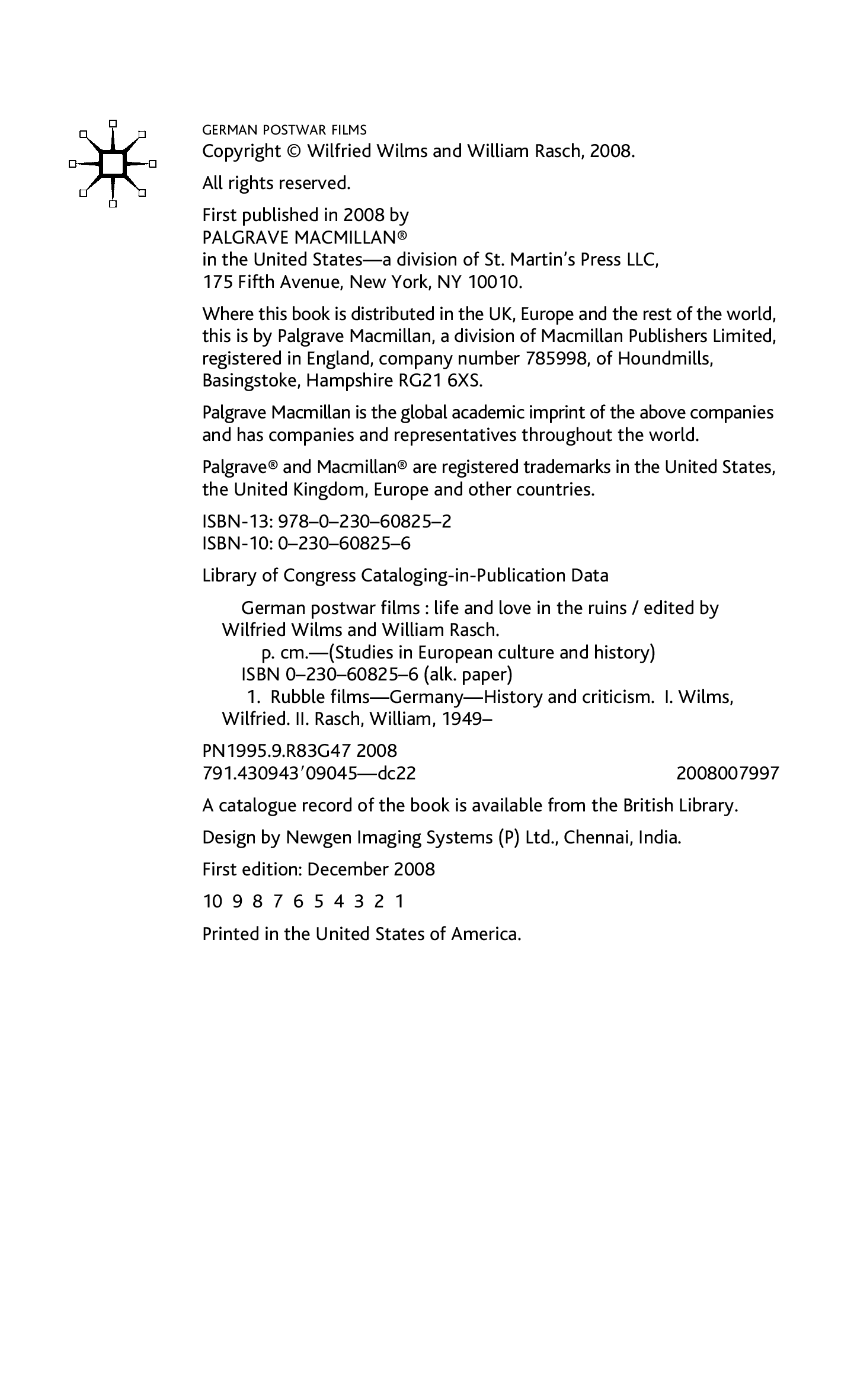 "German Postwar Films: Life and Love in the Ruins (Studies in European Culture and History)" - читать интересную книгу автора (Wilfried Wilms, William Rasch)