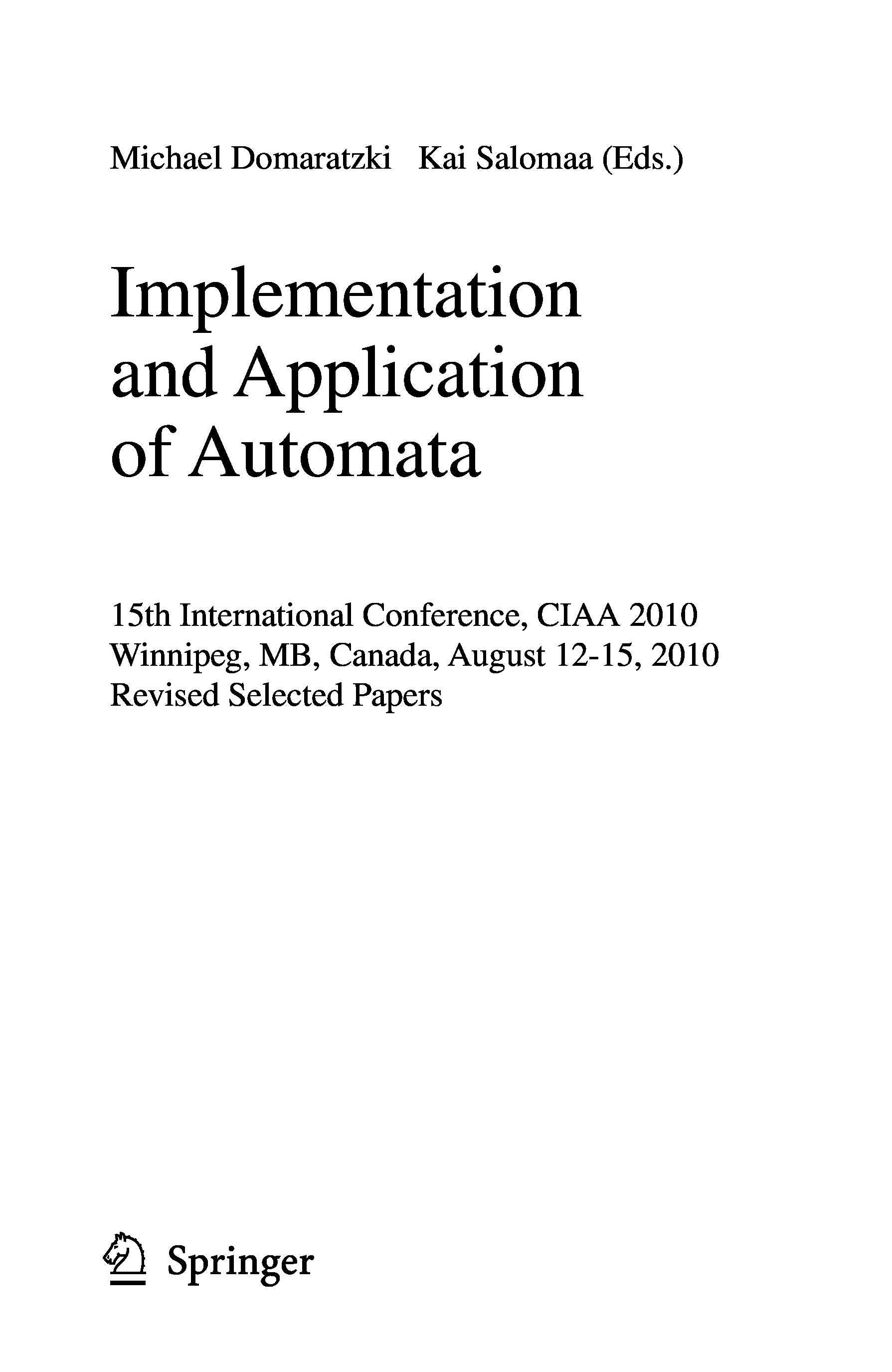 "Implementation and Application of Automata" - читать интересную книгу автора (Michael Domaratzki, Kai Salomaa) |