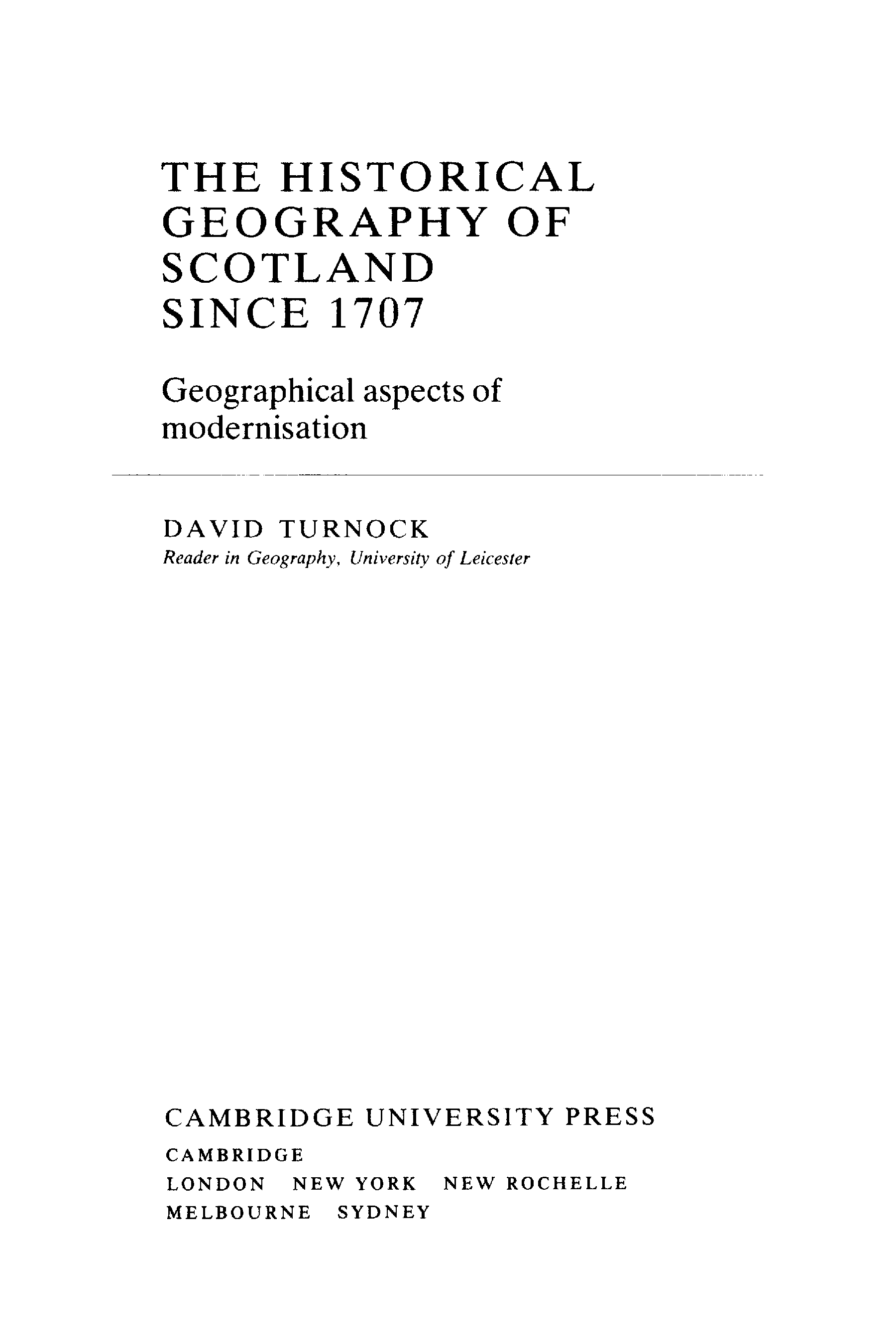 "The Historical Geography of Scotland since 1707: Geographical Aspects of Modernisation (Cambridge Studies in Historical Geography)" - читать интересную книгу автора (David Turnock)