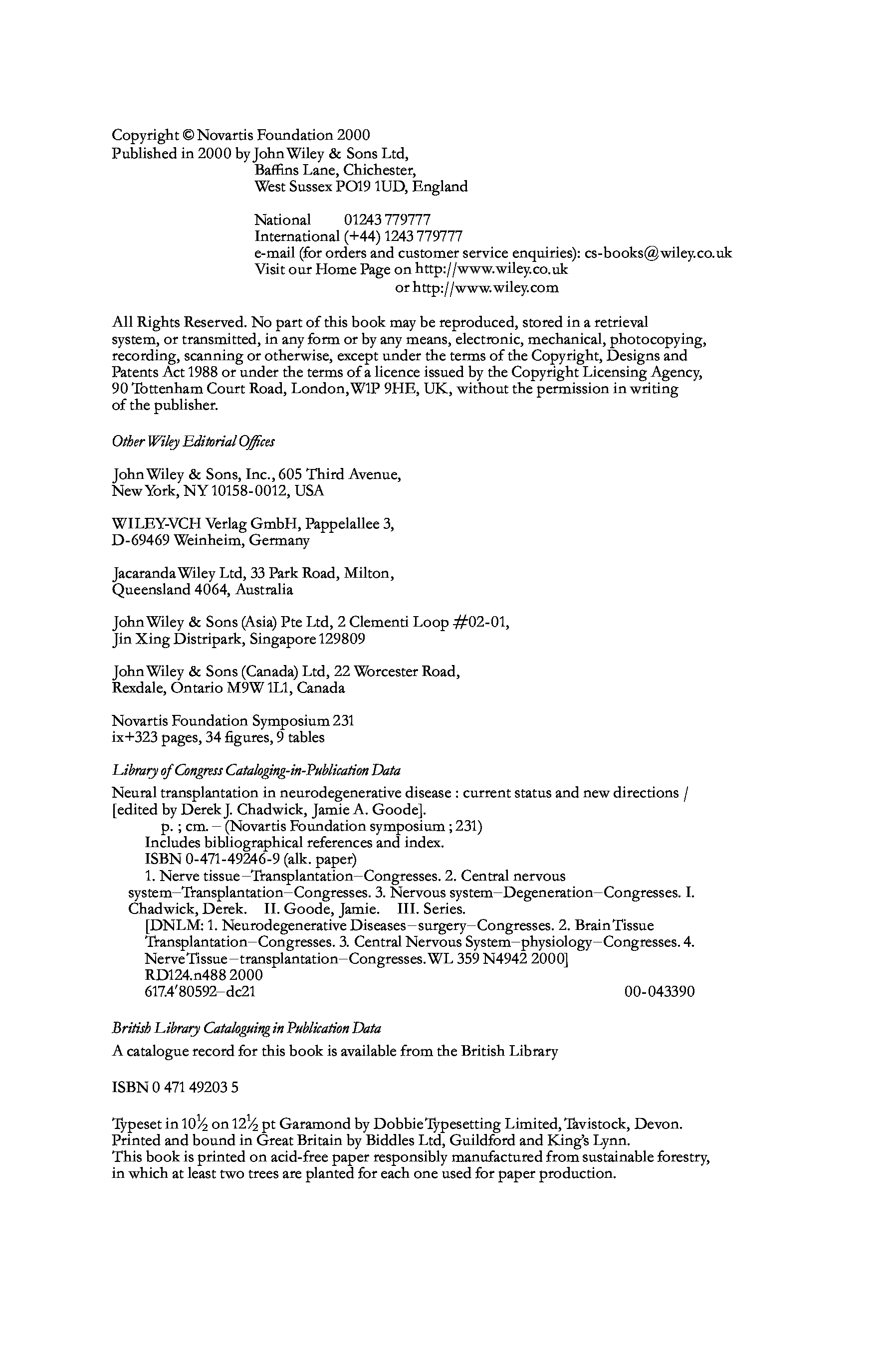 "Neuraltransplantation in Neurodegnerative Disease - Current Status and New Directions (Novartis Foundation Symposium 231)" - читать интересную книгу автора (Novartis Foundation) |