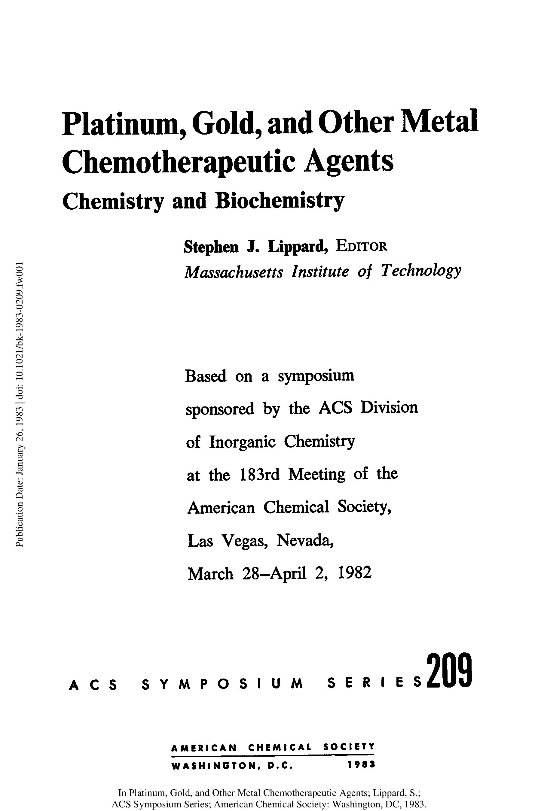 "Platinum, Gold, and Other Metal Chemotherapeutic Agents: Chemistry and Biochemistry (Acs Symposium Series)" - читать интересную книгу автора (Stephen J. Lippard) |