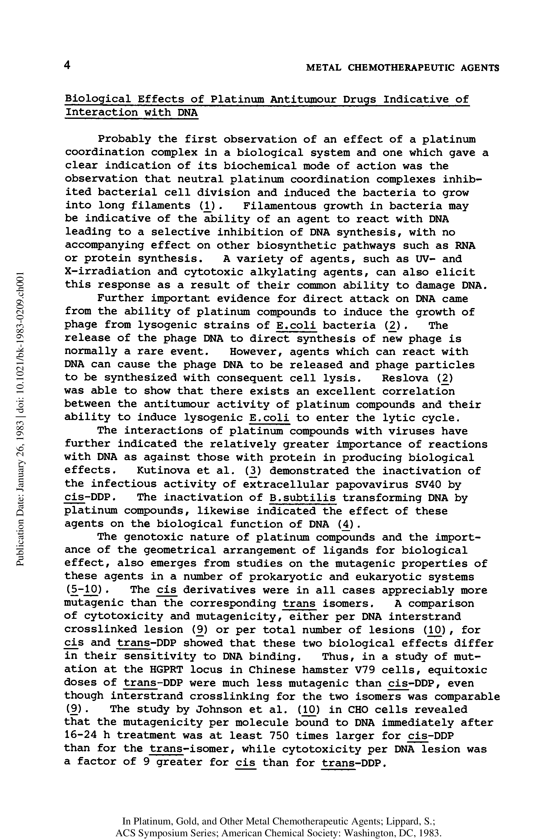 "Platinum, Gold, and Other Metal Chemotherapeutic Agents: Chemistry and Biochemistry (Acs Symposium Series)" - читать интересную книгу автора (Stephen J. Lippard) |
