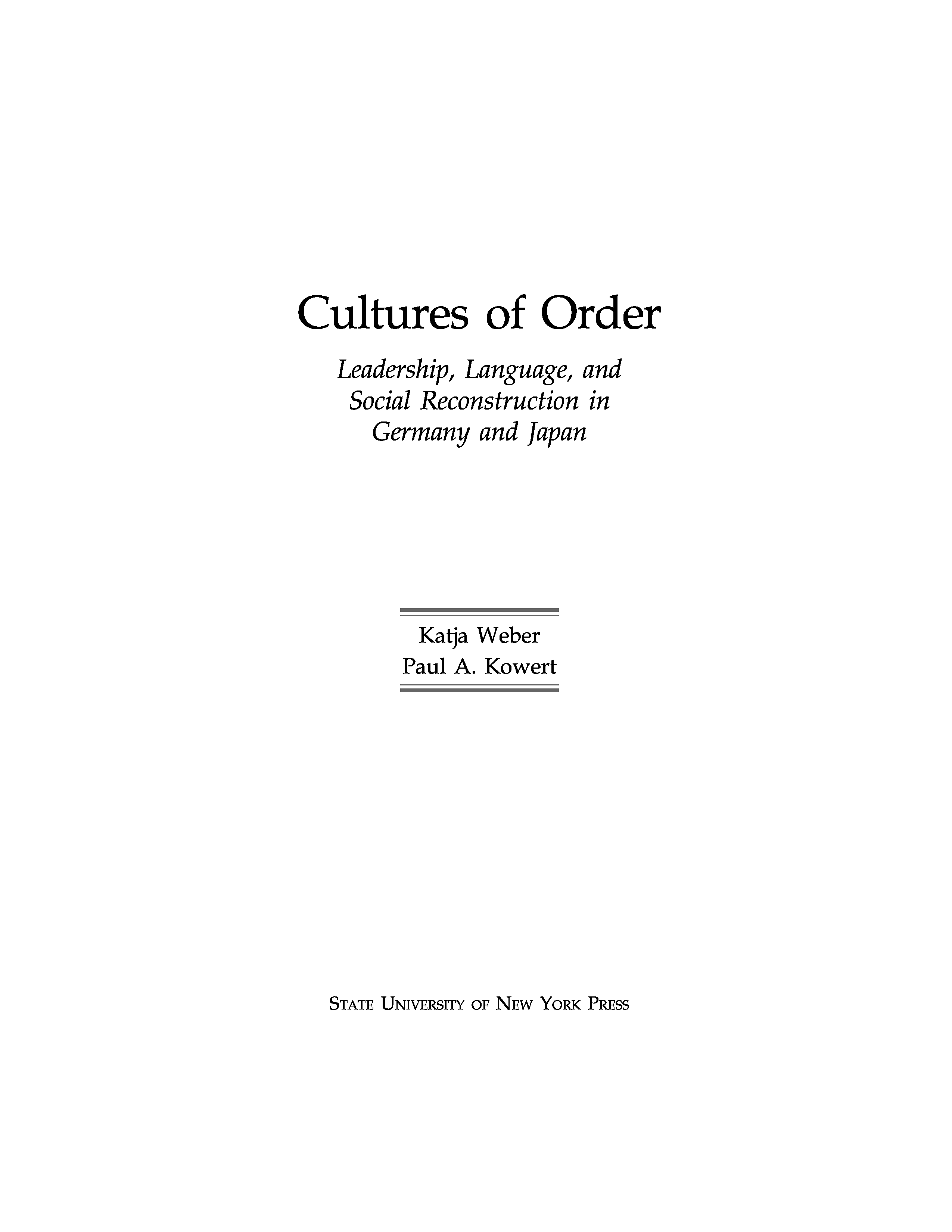 "Cultures of Order: Leadership, Language, and Social Reconstruction in Germany and Japan" - читать интересную книгу автора (Katja Weber, Paul A. Kowert)
